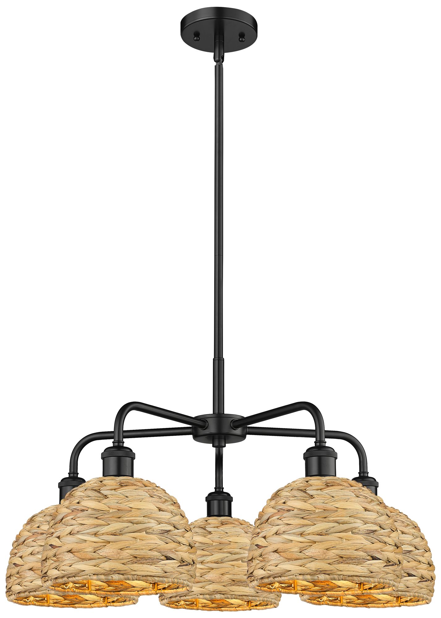 Ballston Woven Rattan 27" Wide 5 Light Matte Black Stem Chandelier