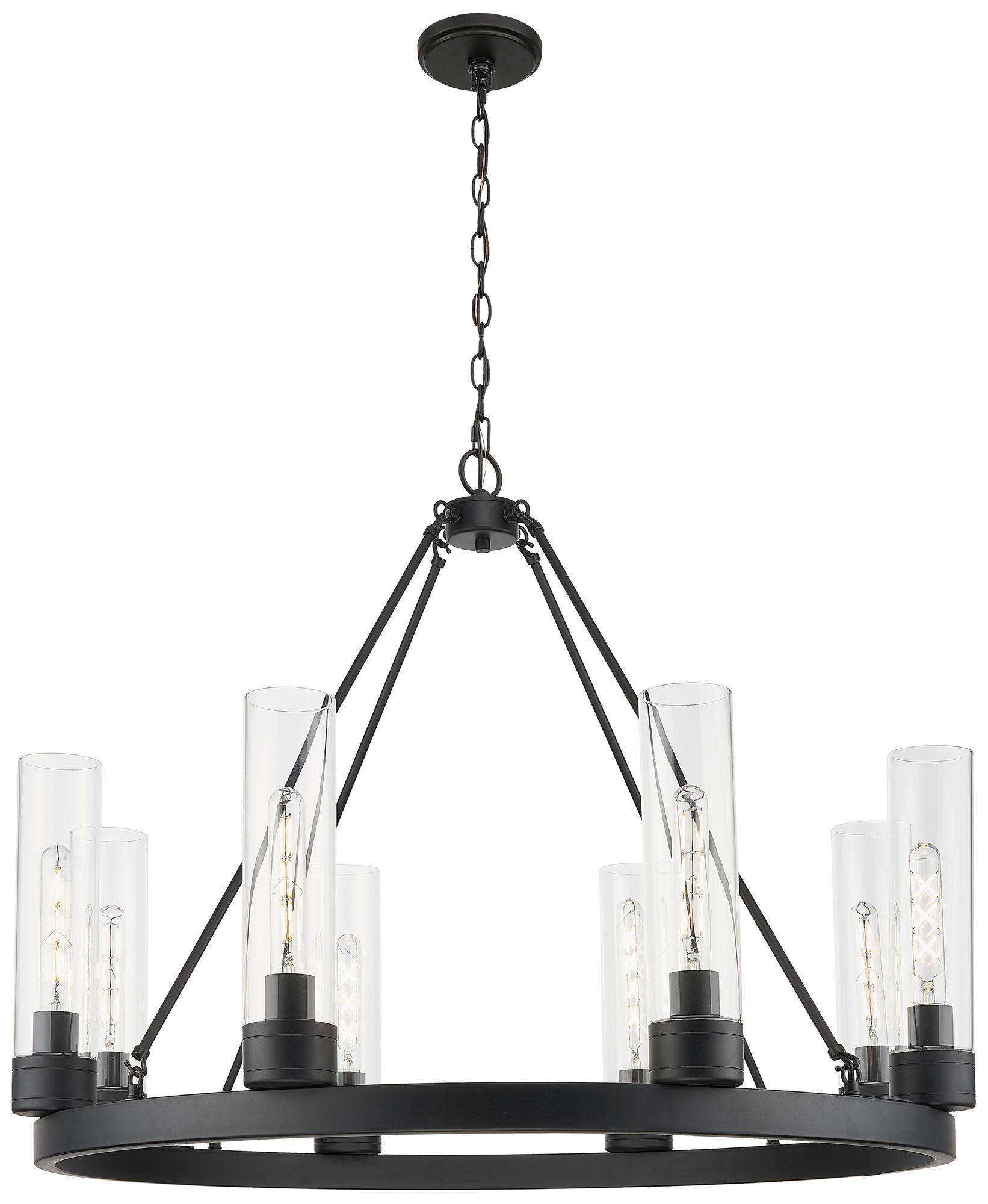 Boreas 36" Wide 6 Light Matte Black Chandelier With 11" Clear Shade