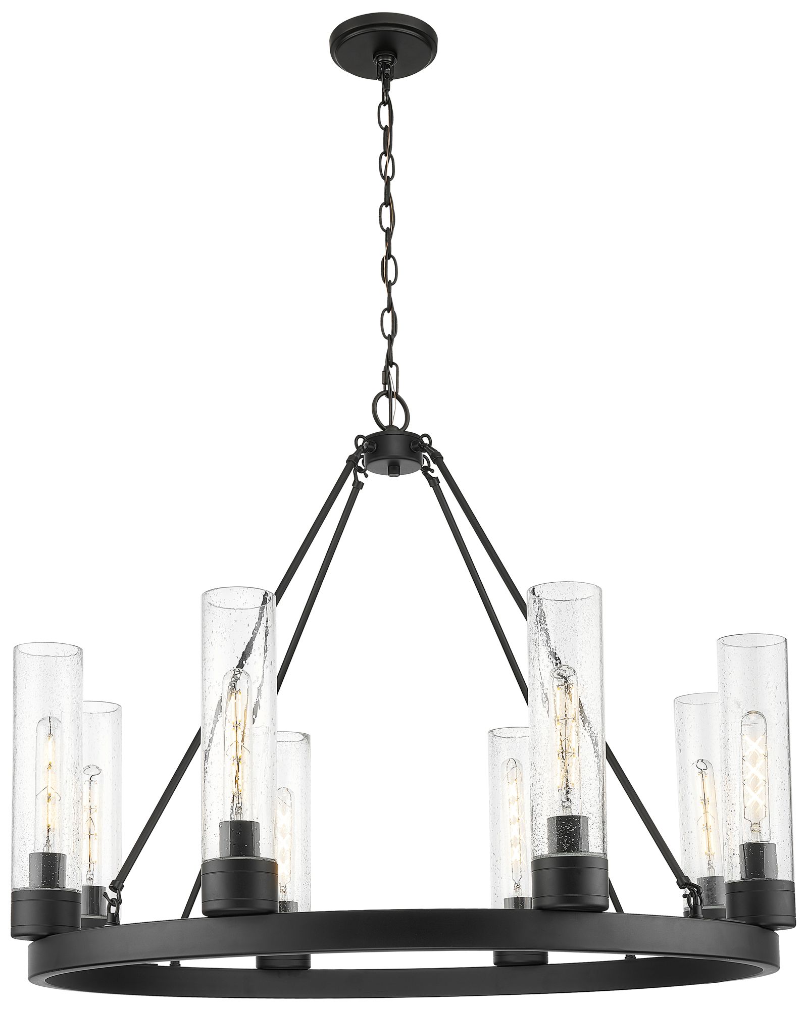 Boreas 36" Wide 6 Light Matte Black Chandelier With 11" Seedy Shade