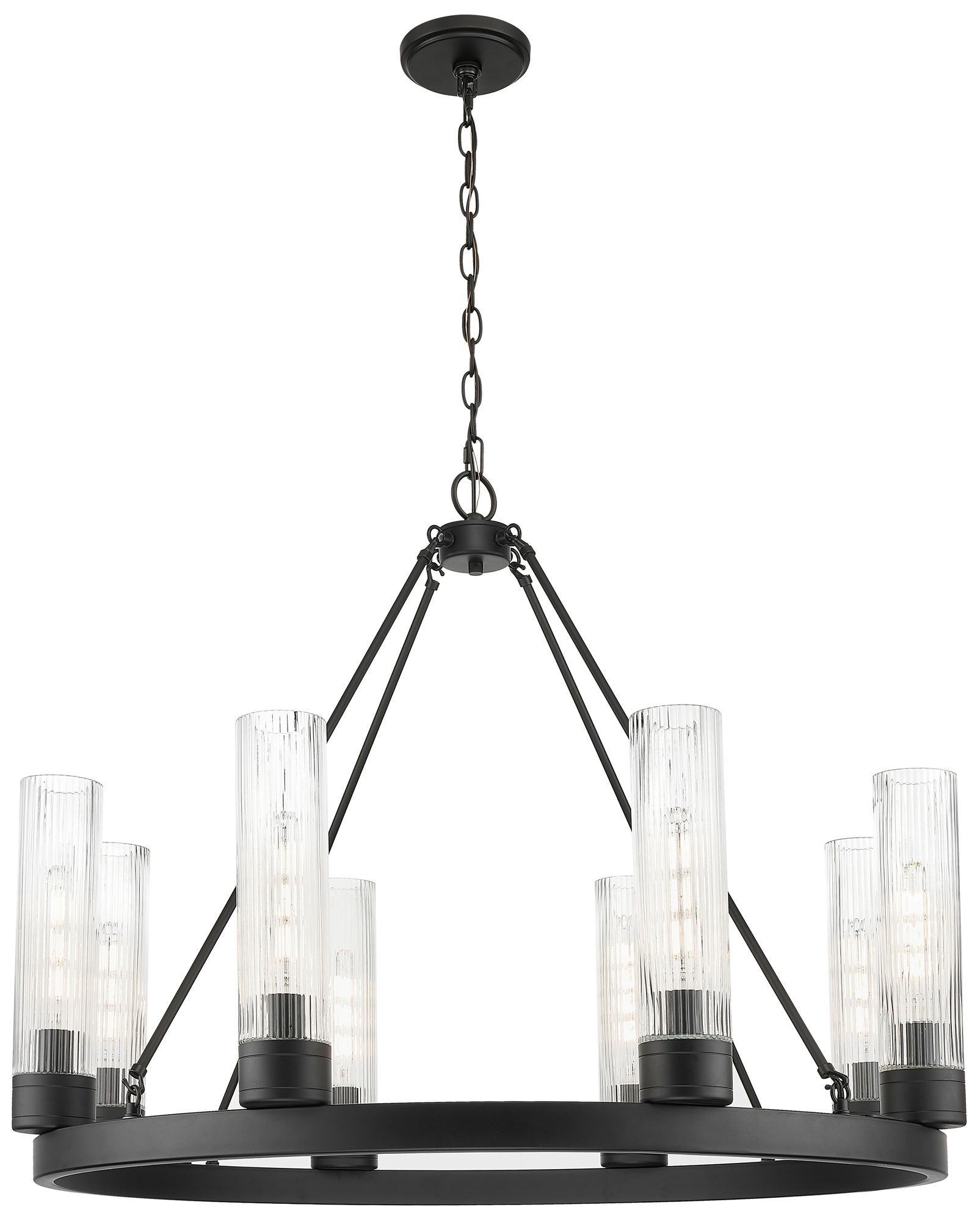 Boreas 36"W 6 Light Black Chandelier With 11" Striped Clear Shade