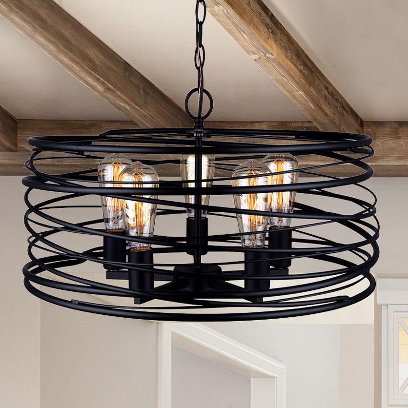 Canarm Ryland 22" Wide Modern Matte Black 5-Light Cage Pendant