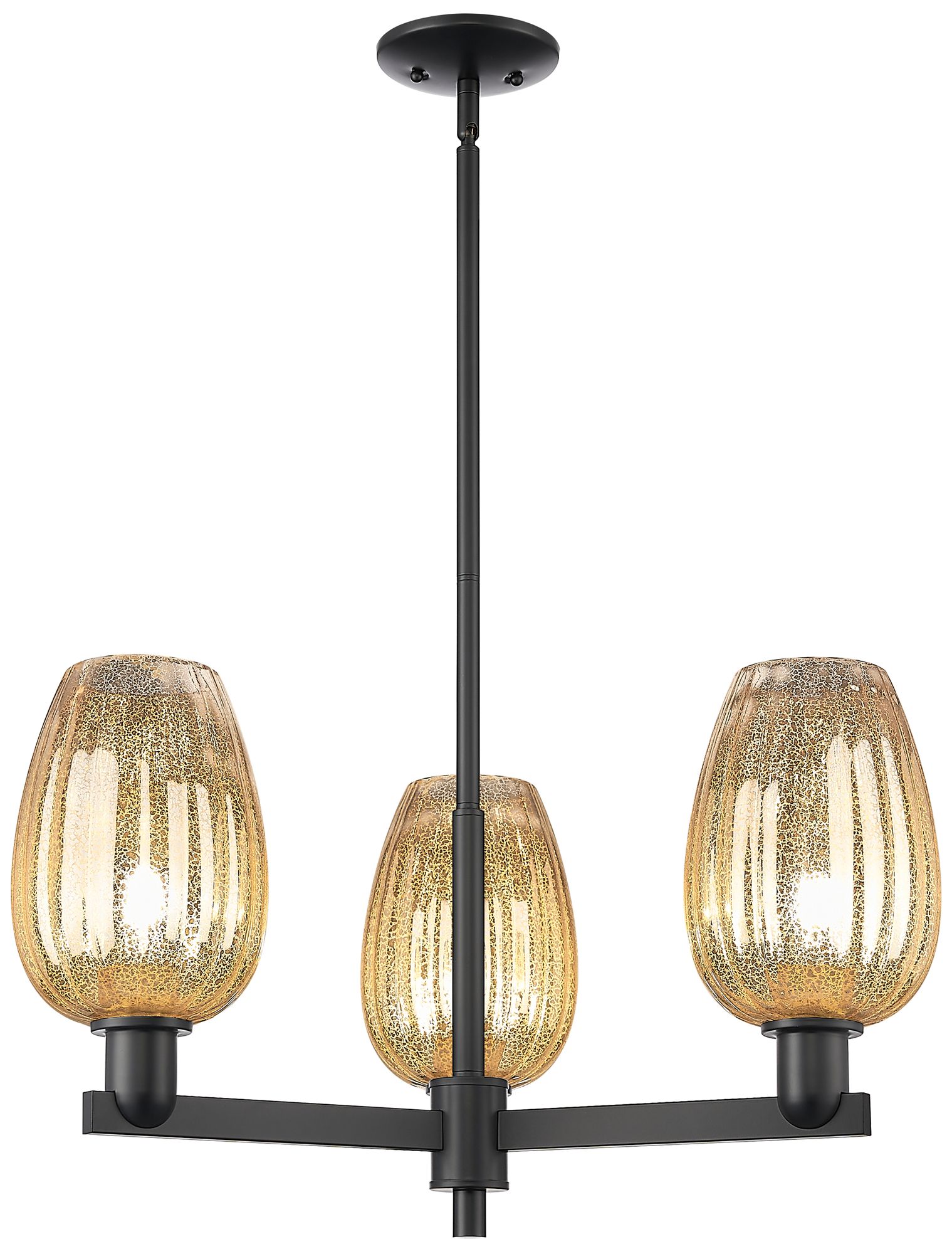 Preston 18"W 3 Light Matte Black Stem Chandelier w/ Flute Mercury Shade