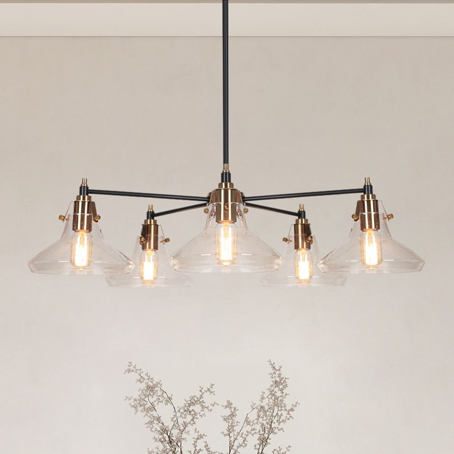 5-Light 33.1"W Branch Matt Black and Plated Brass Chandeliers