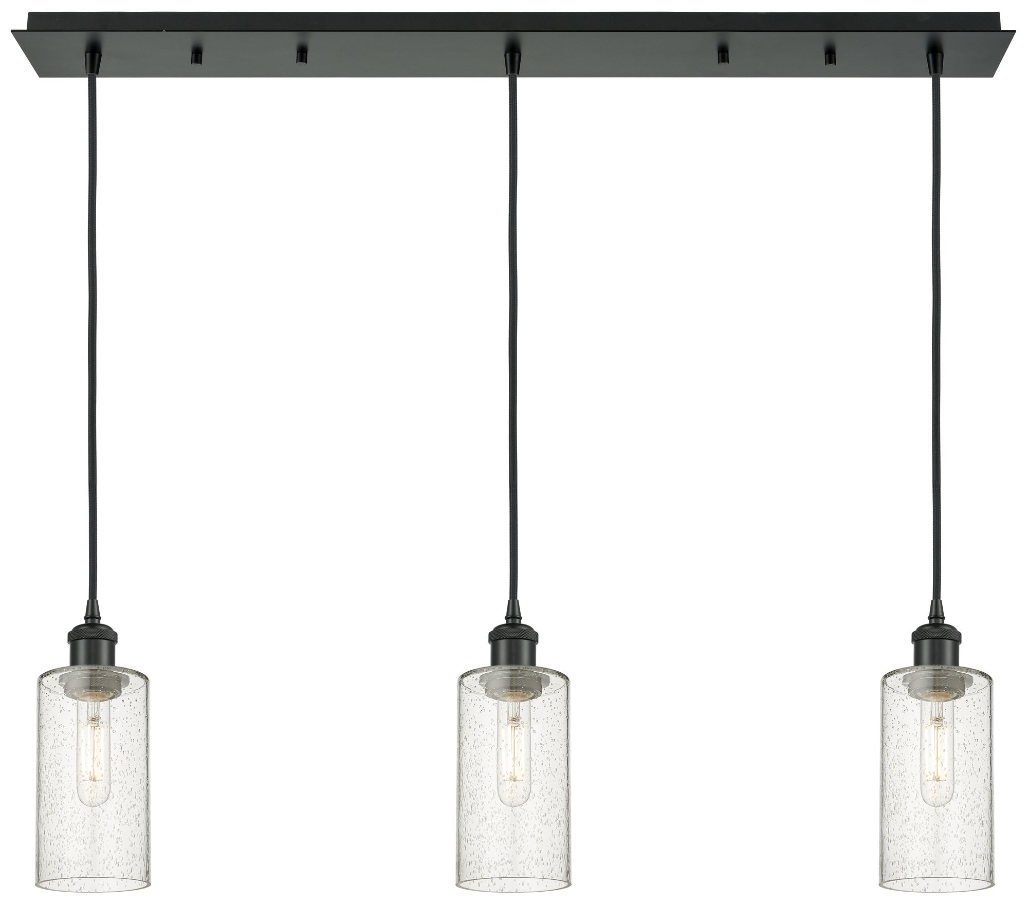Crown Point 5 Light 37" Cord Hung Linear Pendant Black w/ Light Smoke Shade