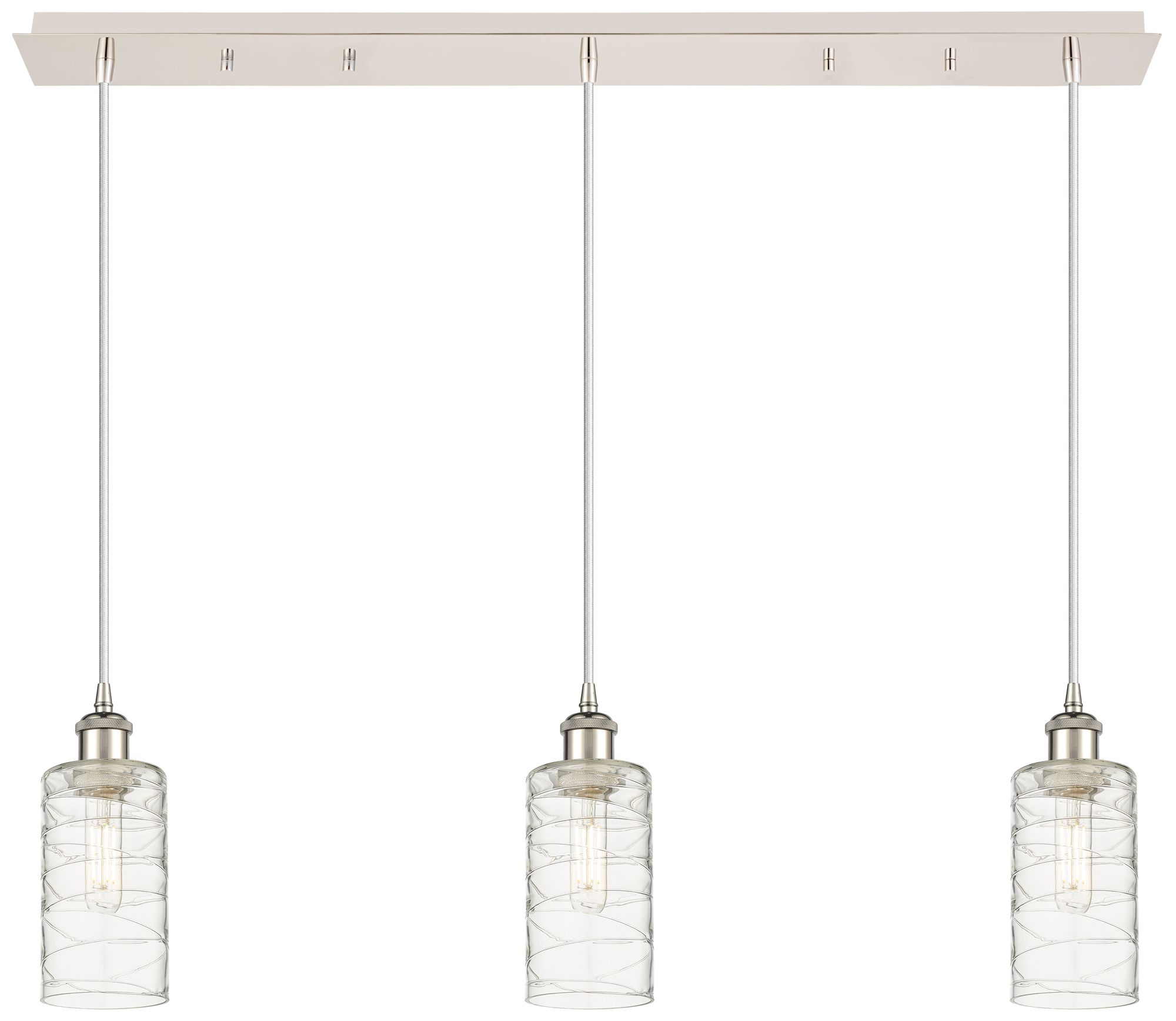 Crown Point 3 Light 37" Cord Hung Linear Pendant Nickel w/ Deco Swirl Shade