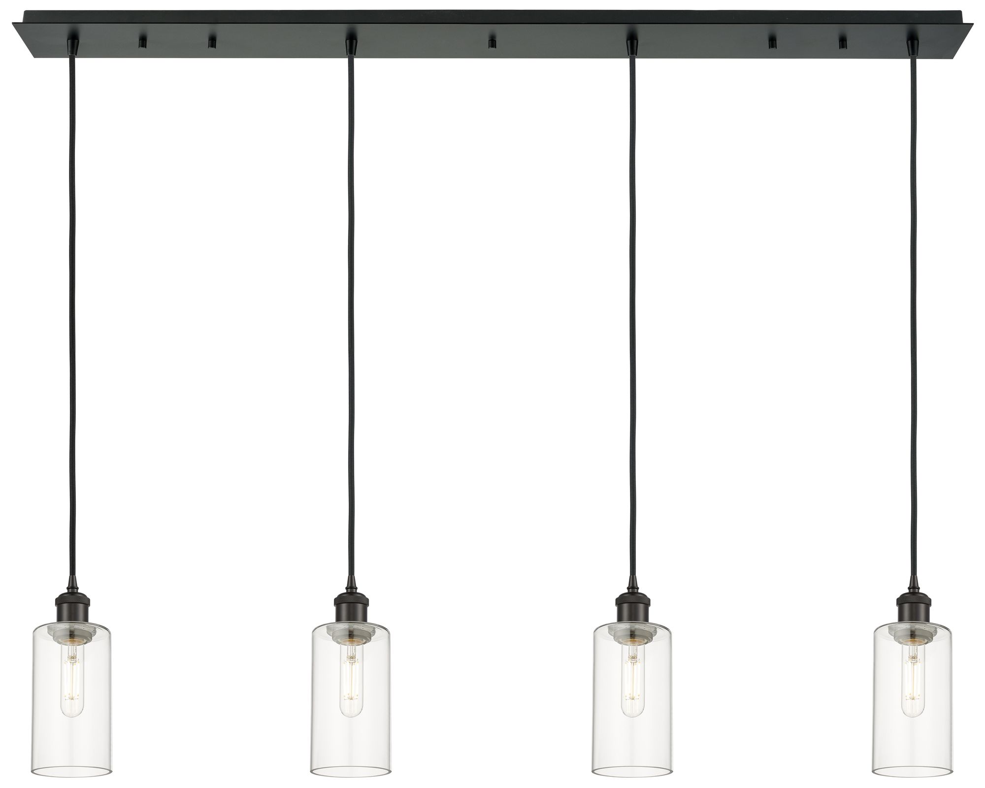Crown Point 4 Light 49" Cord Hung Linear Pendant Matte Black Clear Shade