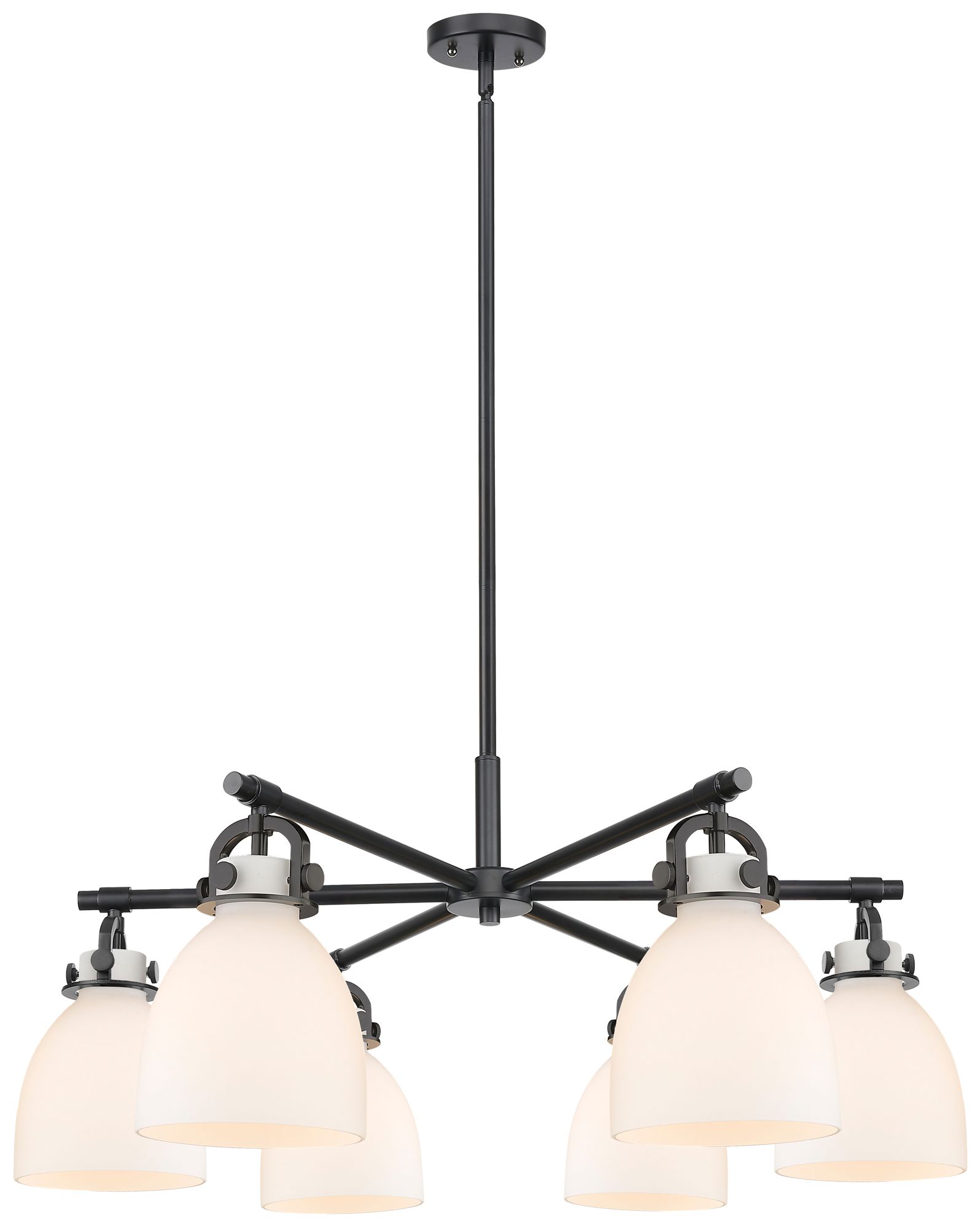 Newton Bell 26"W 6 Light Black Stem Arch Chandelier With White Shade