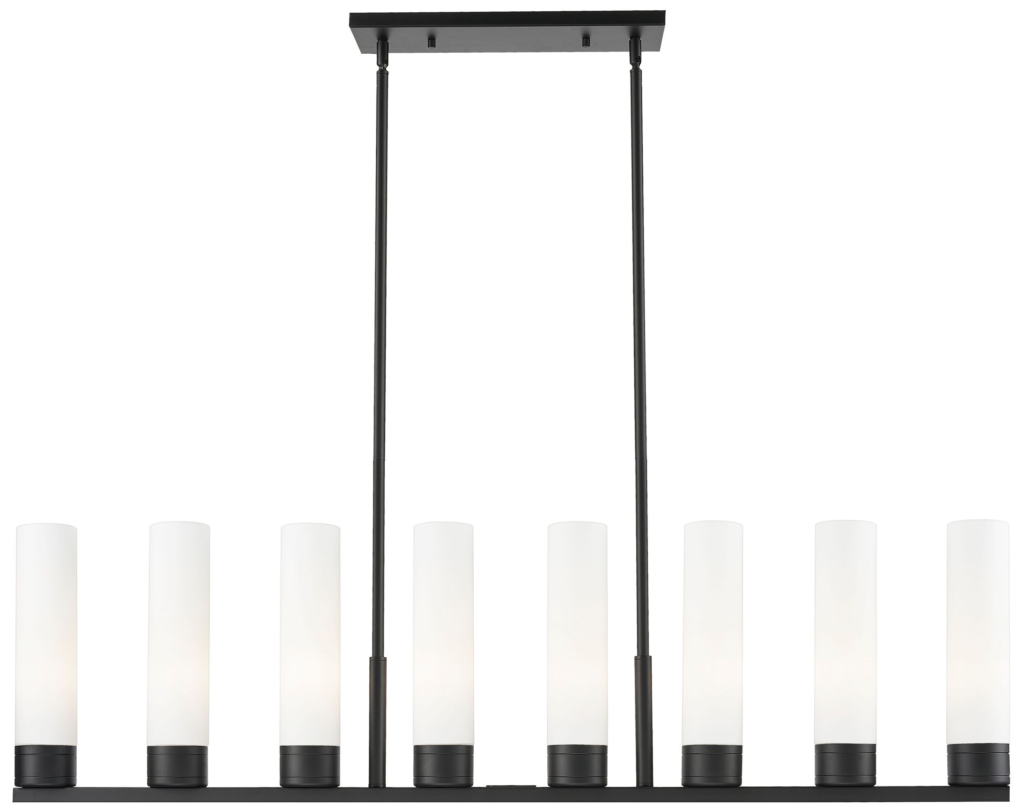 Boreas 48"W 6 Light Matte Black Stem Island Light With 11" White Shade