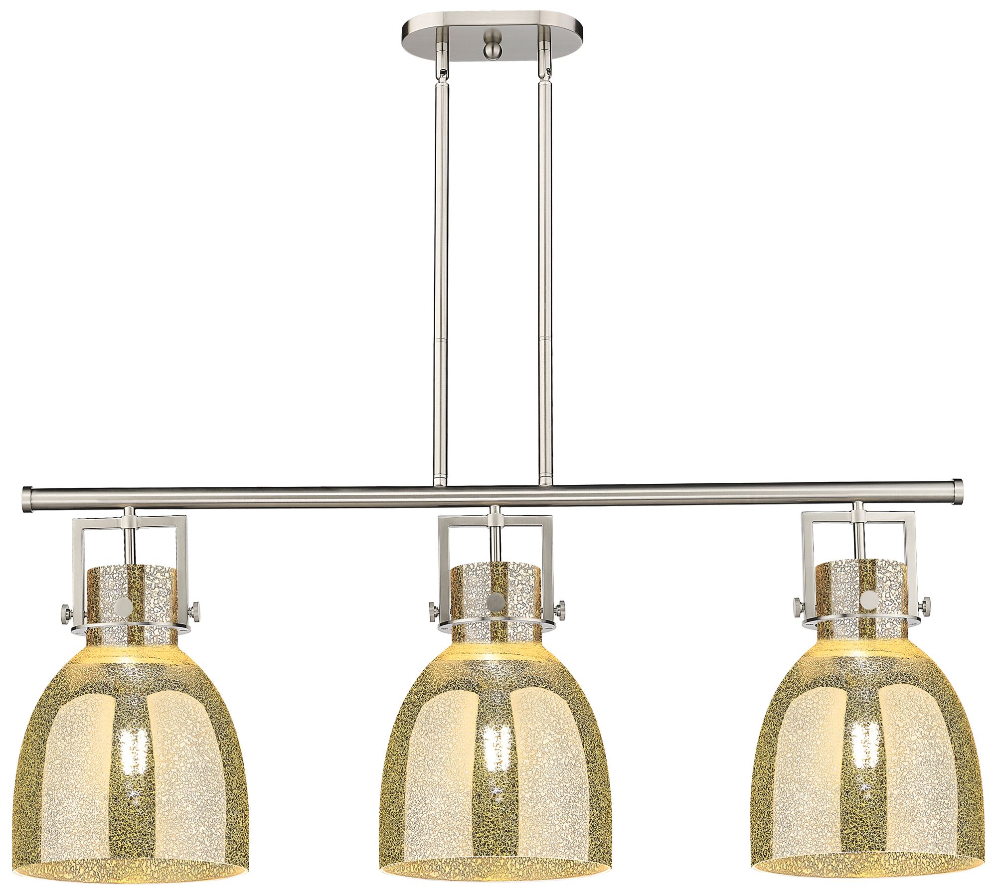 Newton Bell 41.5"W 3 Light Satin Stem Island Light w/ Mercury Shade
