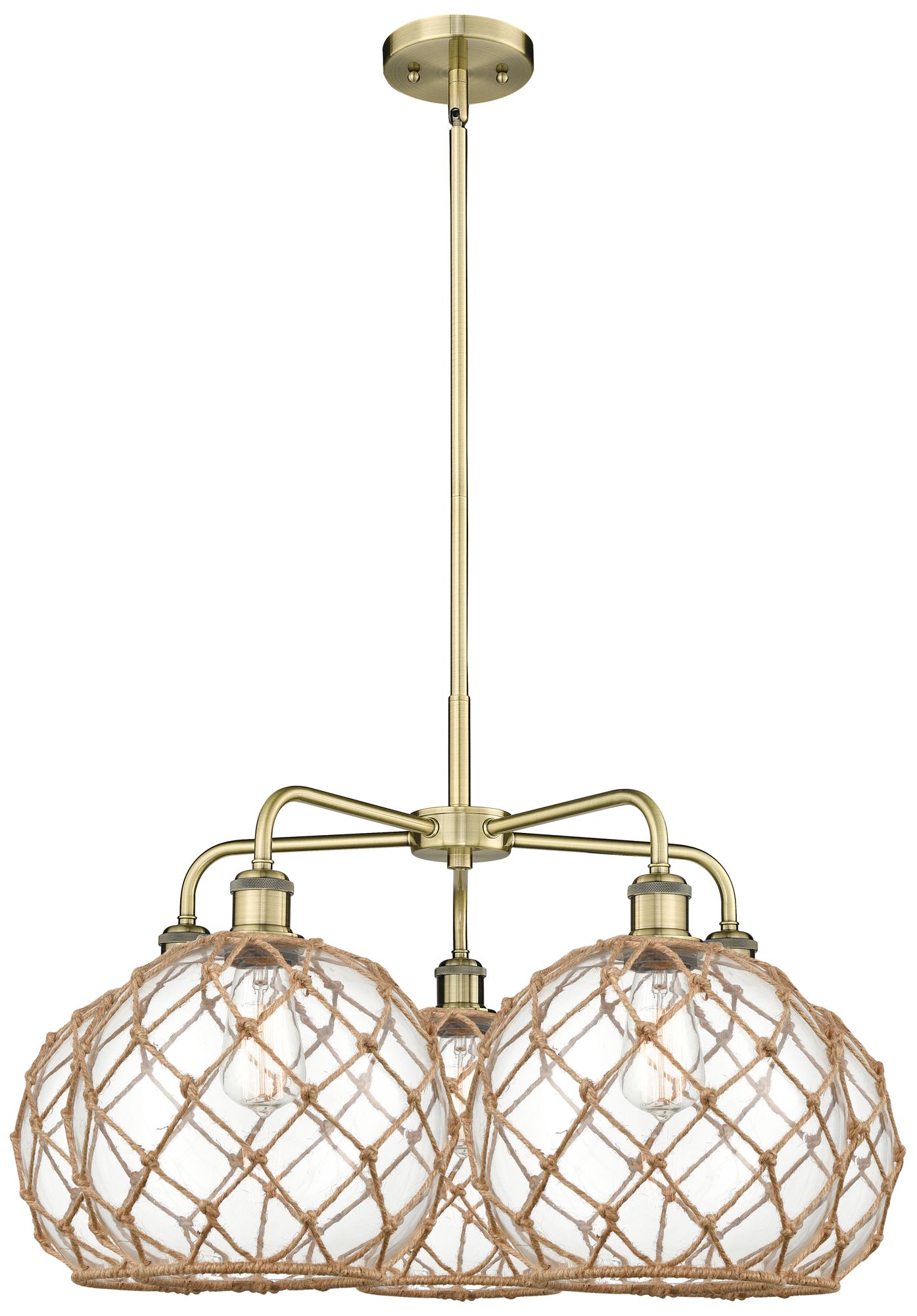 Ballston Farmhouse 29"W 5 Light Brass Stem Chandelier w/ Clear Brown Shade