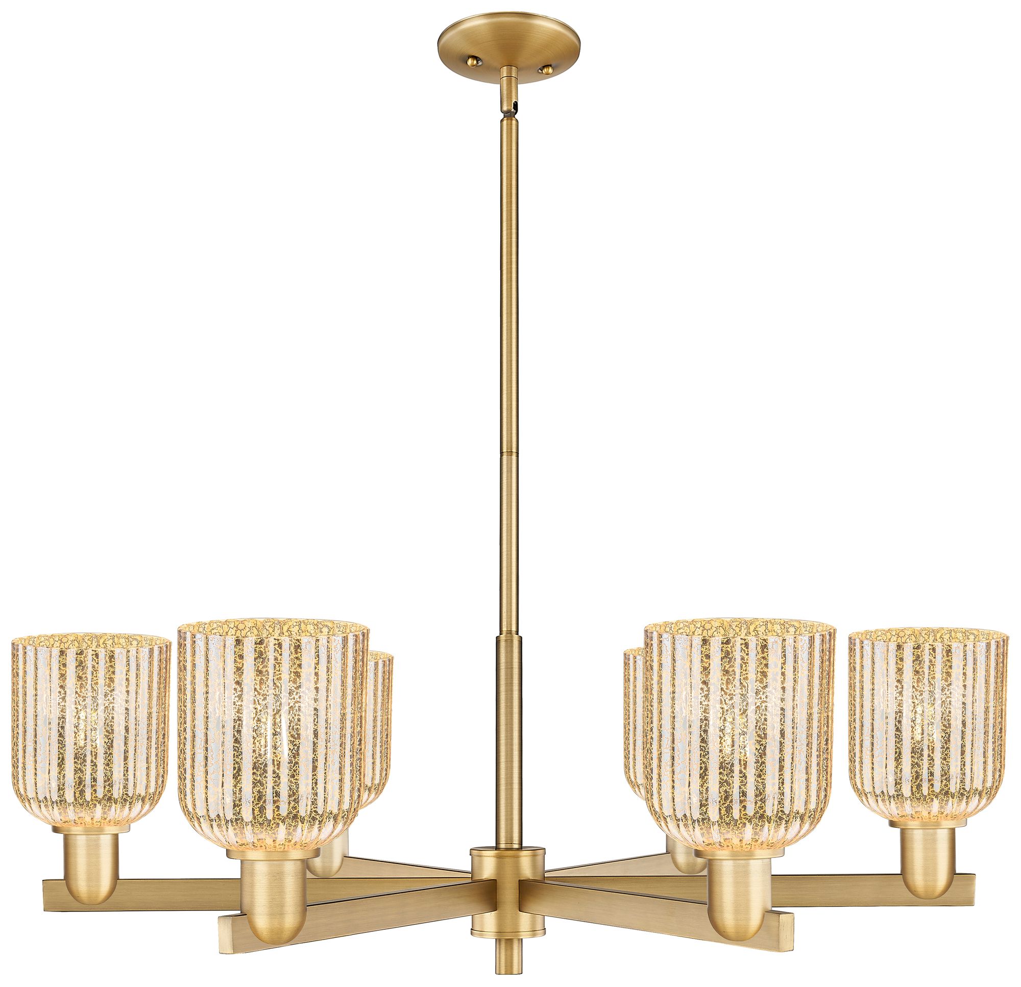 Bridal Veil 35"W 6 Light Brushed Brass Stem Chandelier w/ Mercury Shade