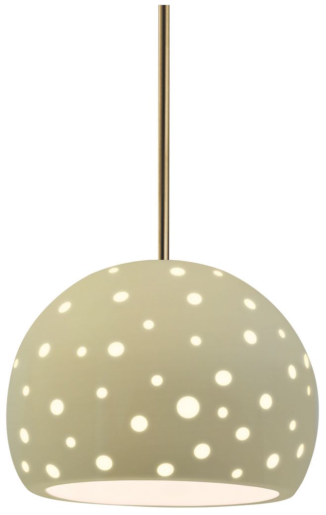 Perforated Globe 10"W Muted Yellow, Antique Brass Pendant - Rigid Stem