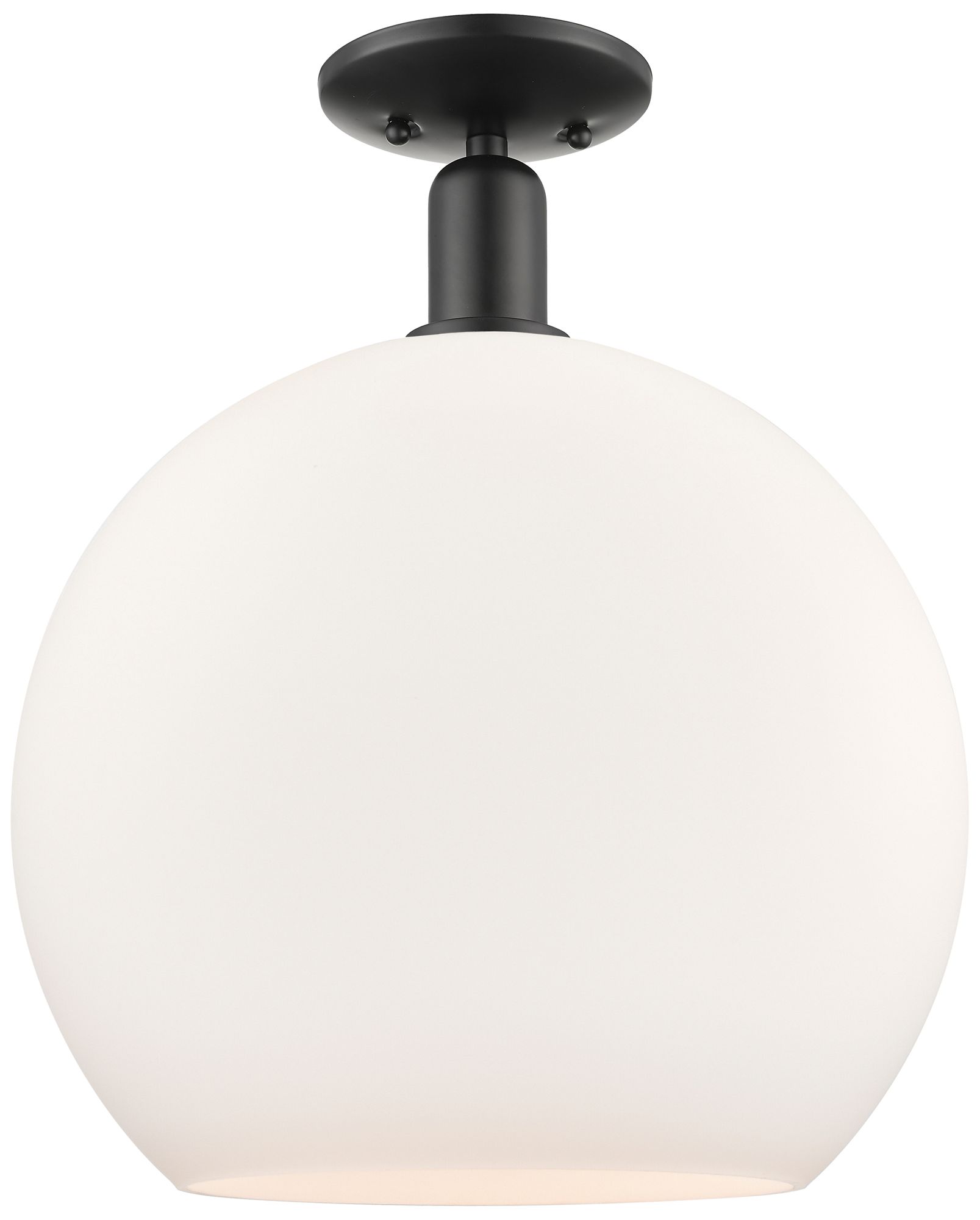 Arcadia Athens 12"W Matte Black Semi.Flush Mount w/ Matte White Shade