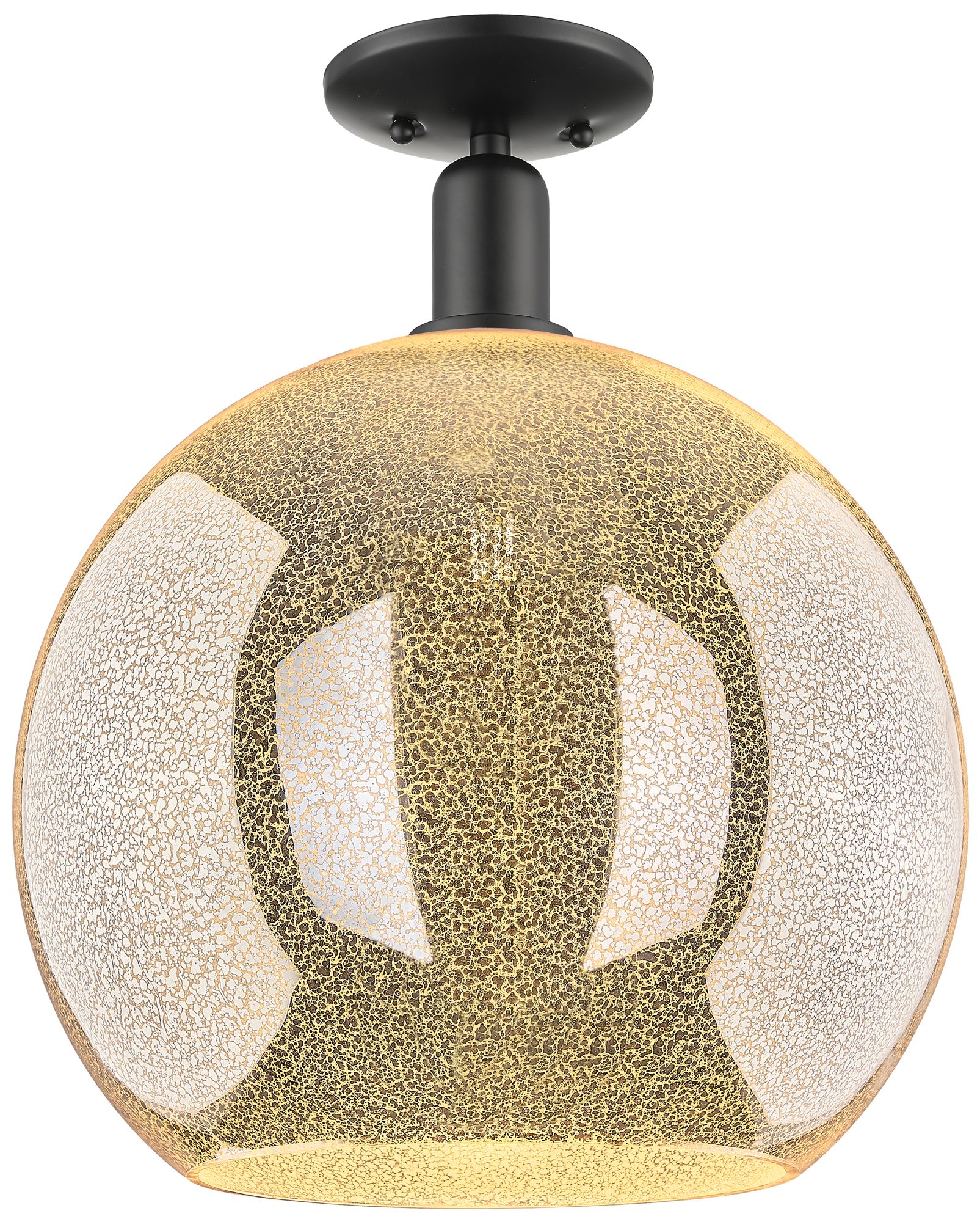 Arcadia Athens 10"W Matte Black Semi.Flush Mount With Mercury Shade