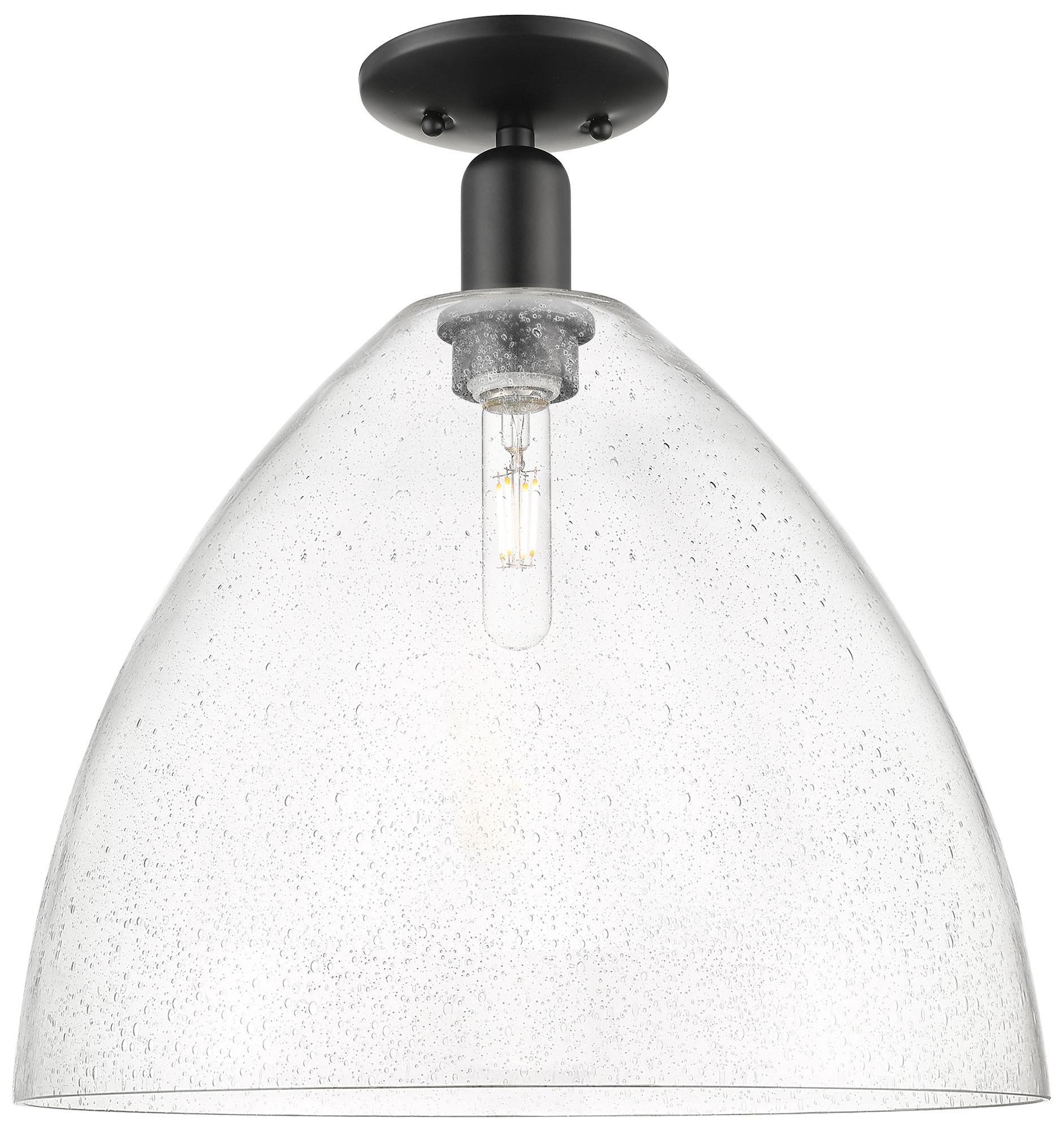 Arcadia Bristol 16" Wide Matte Black Semi.Flush Mount With Seedy Shade