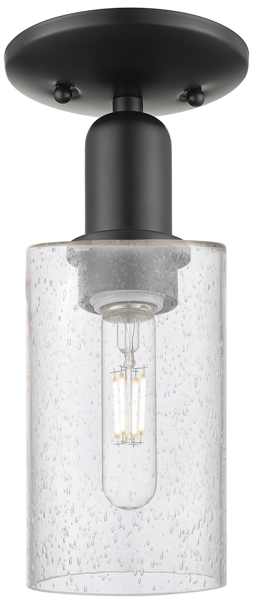 Arcadia Clymer 4" Wide Matte Black Semi.Flush Mount With Seedy Shade