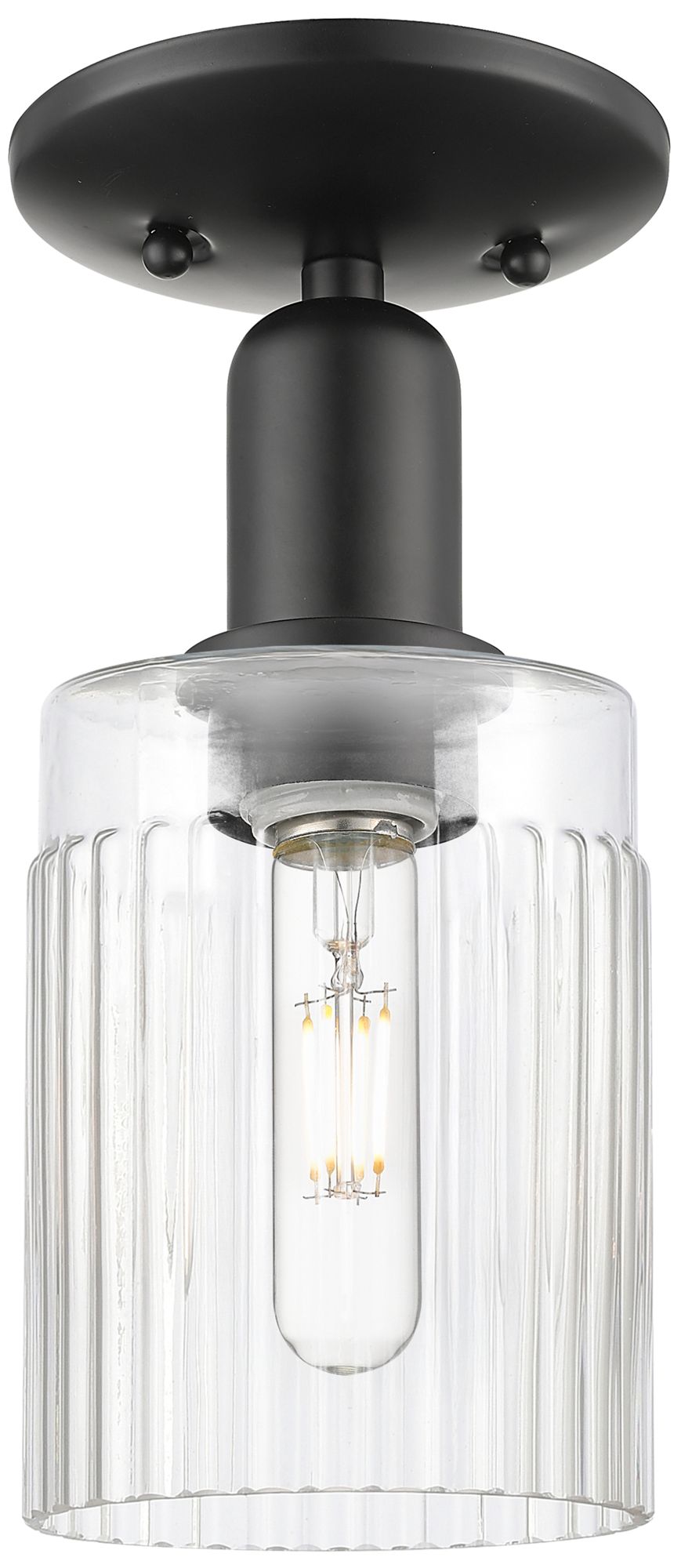 Arcadia Hadley 5" Wide Matte Black Semi.Flush Mount With Clear Shade