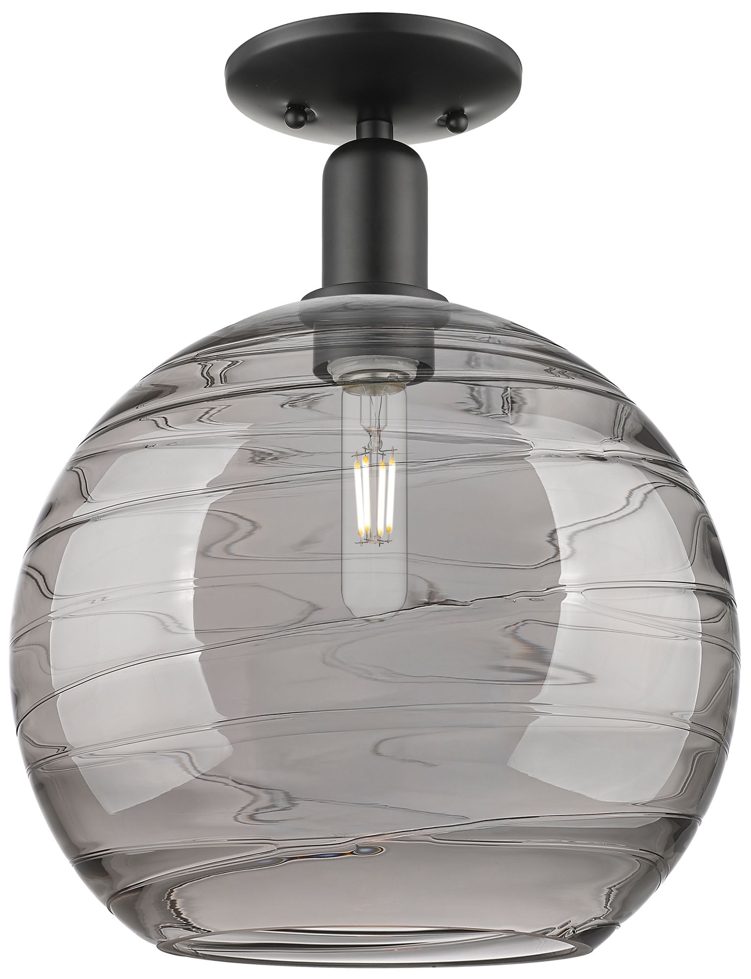 Arcadia Athens 12"W Black Semi-Flush w/ Light Smoke Deco Swirl Shade