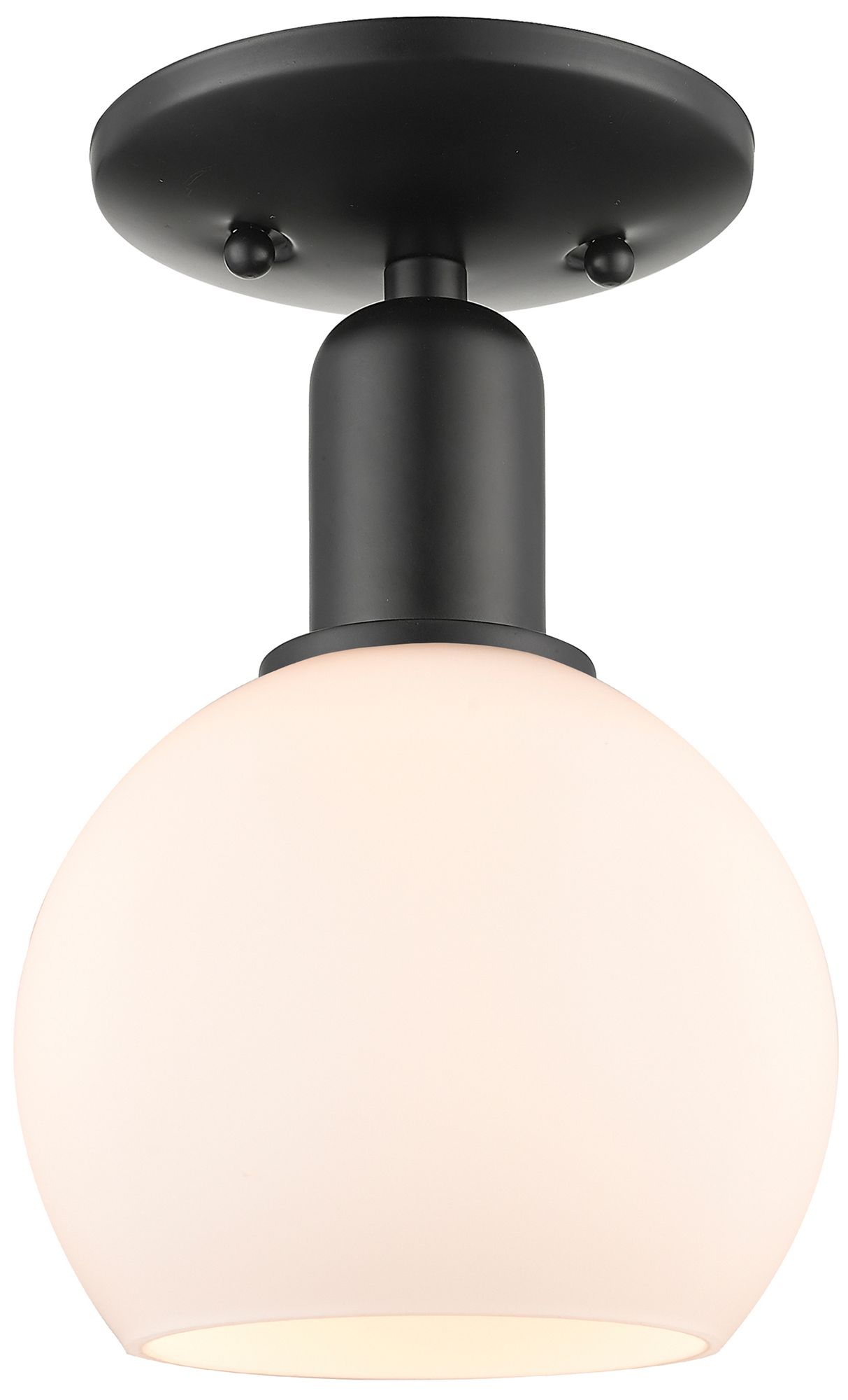 Arcadia Athens 6"W Matte Black Semi.Flush Mount With Matte White Shade