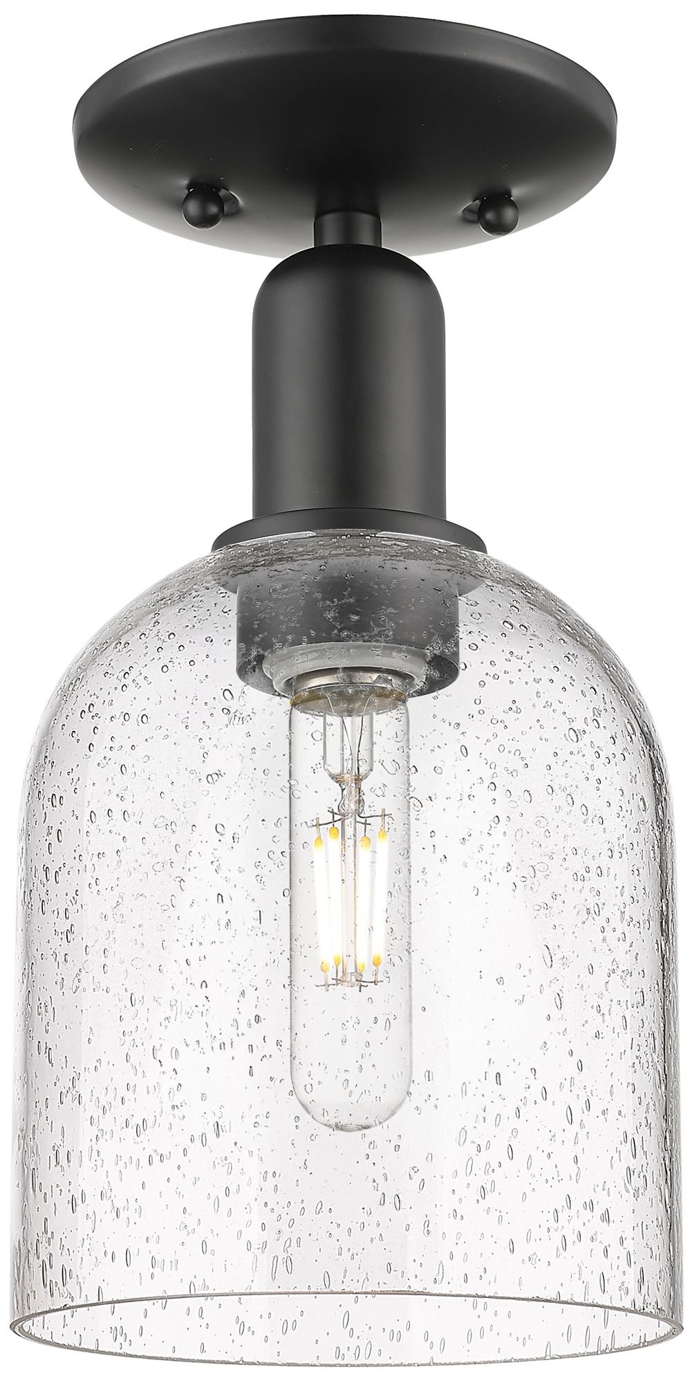 Arcadia Bella 6" Wide Matte Black Semi.Flush Mount With Seedy Shade