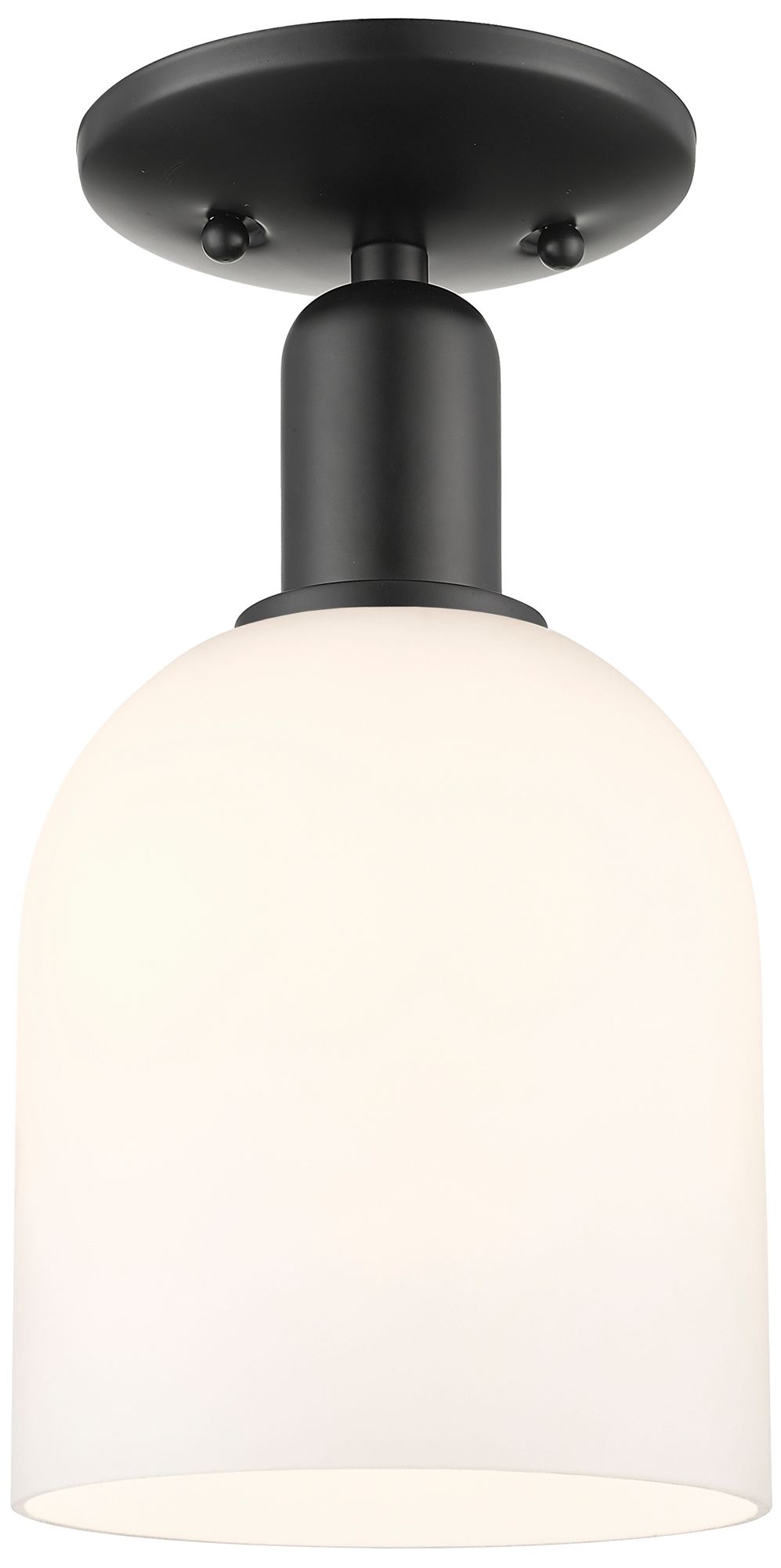 Arcadia Bella 6" Wide Matte Black Semi.Flush Mount With White Shade