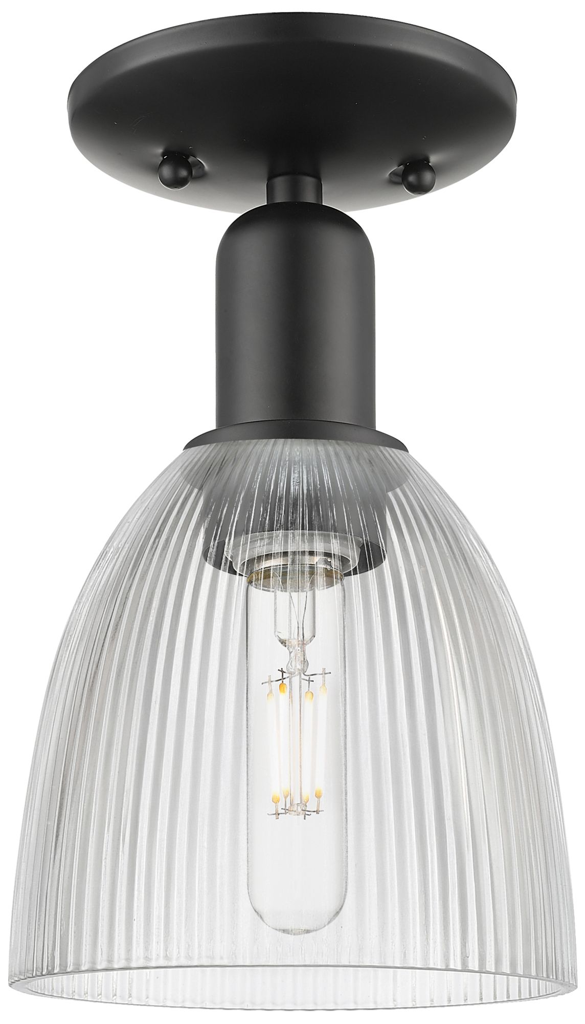 Arcadia Brookfield 6"W Matte Black Semi.Flush Mount With Clear Shade