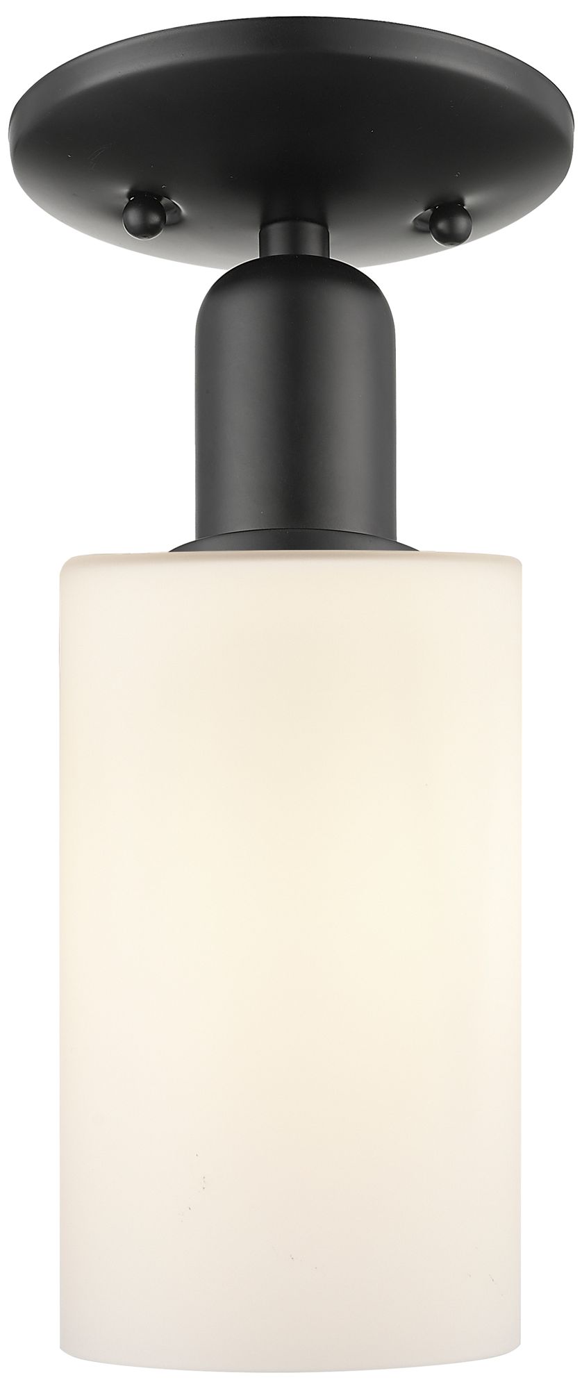 Arcadia Clymer 4"W Matte Black Semi.Flush Mount With Matte White Shade