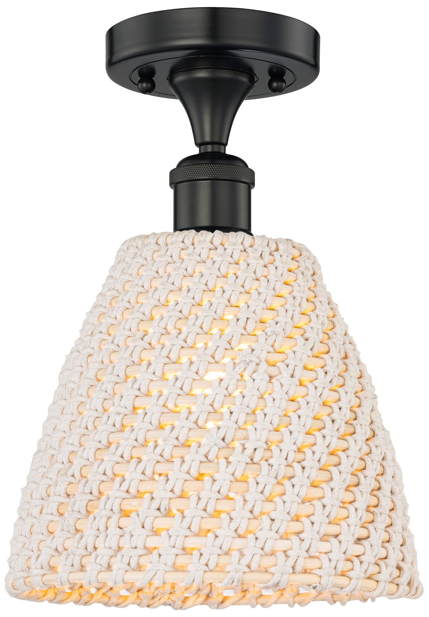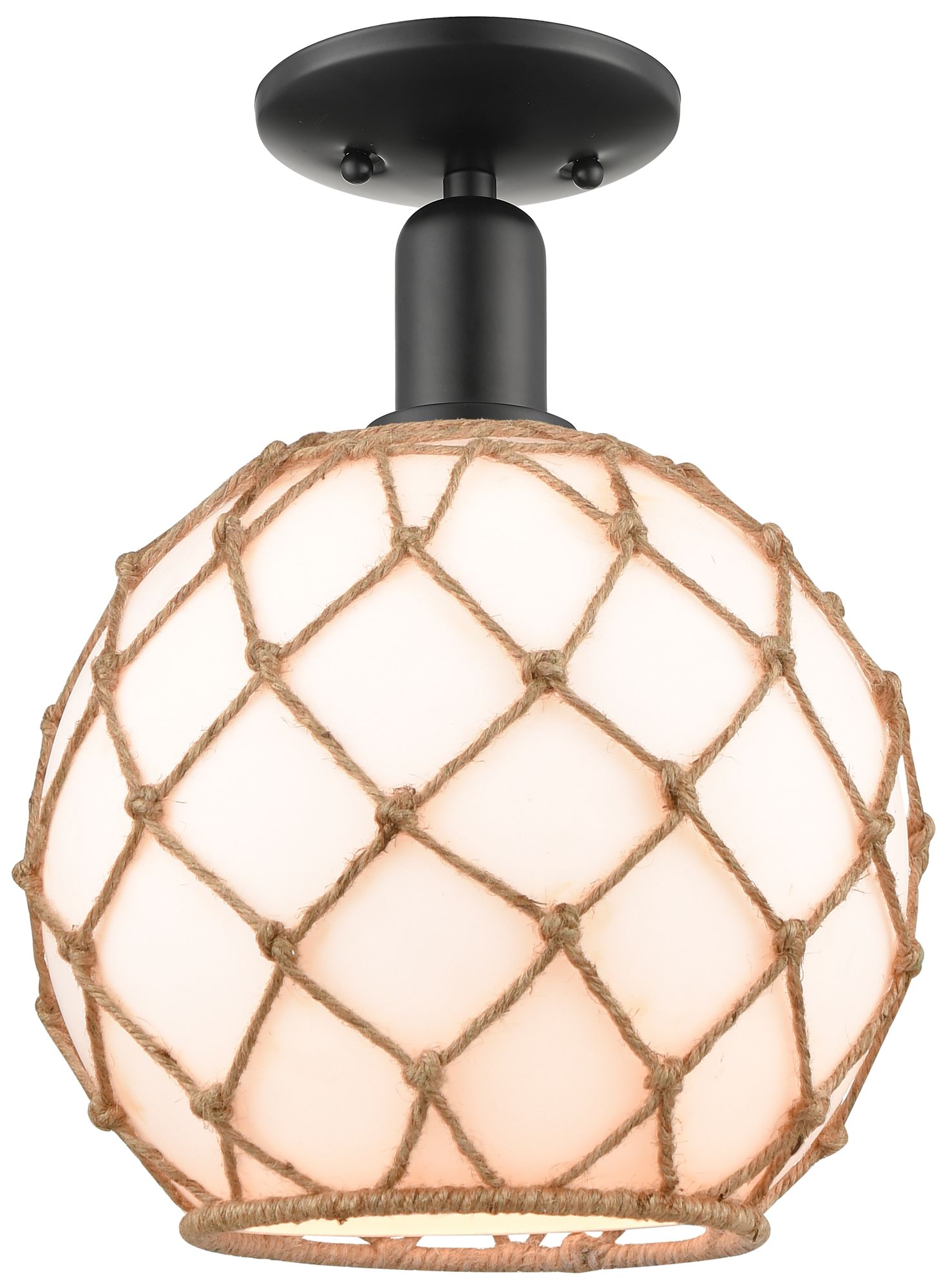 Arcadia Farmhouse Rope 8"W Black Semi.Flush Mount w/ White Brown Shade