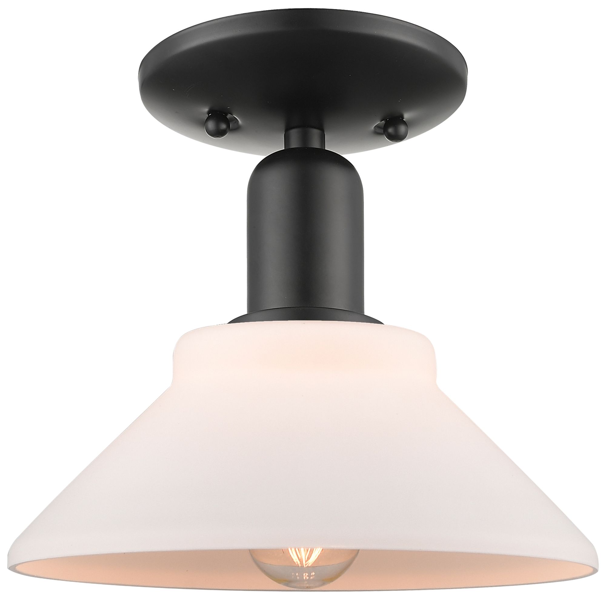 Arcadia Orwell 8"W Matte Black Semi.Flush Mount With Matte White Shade