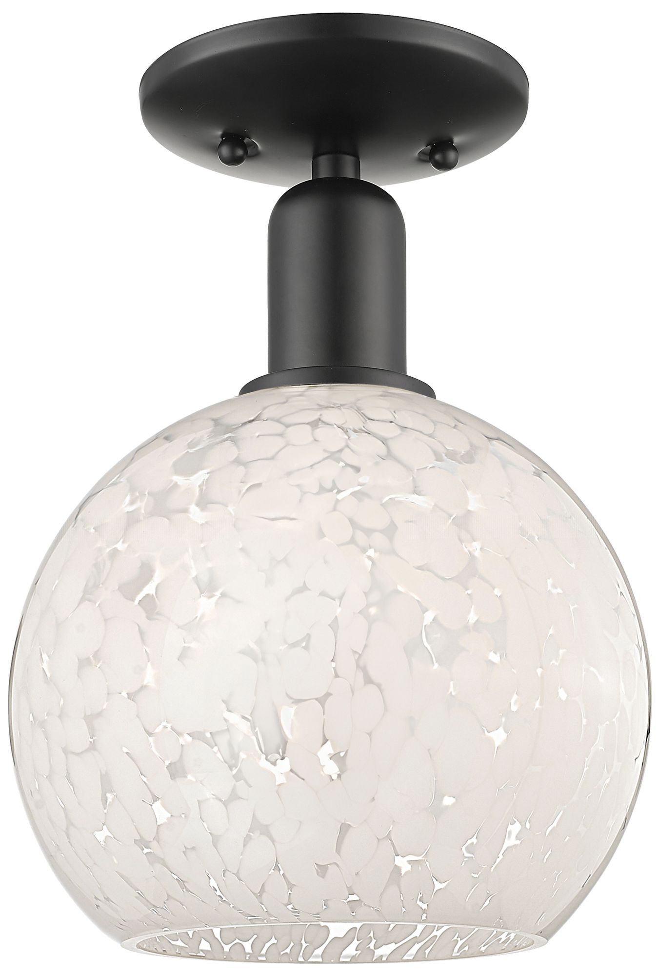 Arcadia Athens 8"W Matte Black Semi.Flush Mount With Matte White Shade