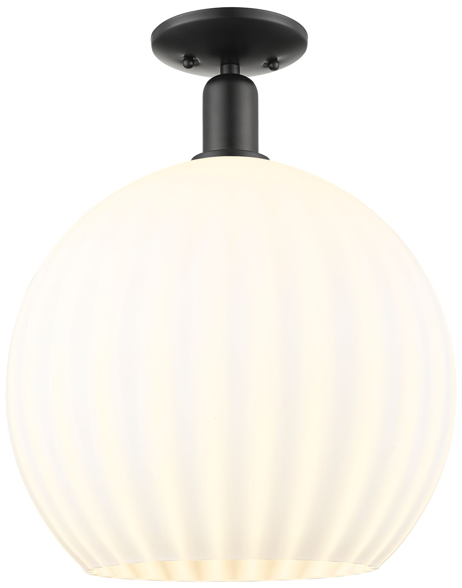 Arcadia White Venetian 12" Wide Matte Black Semi.Flush Mount With