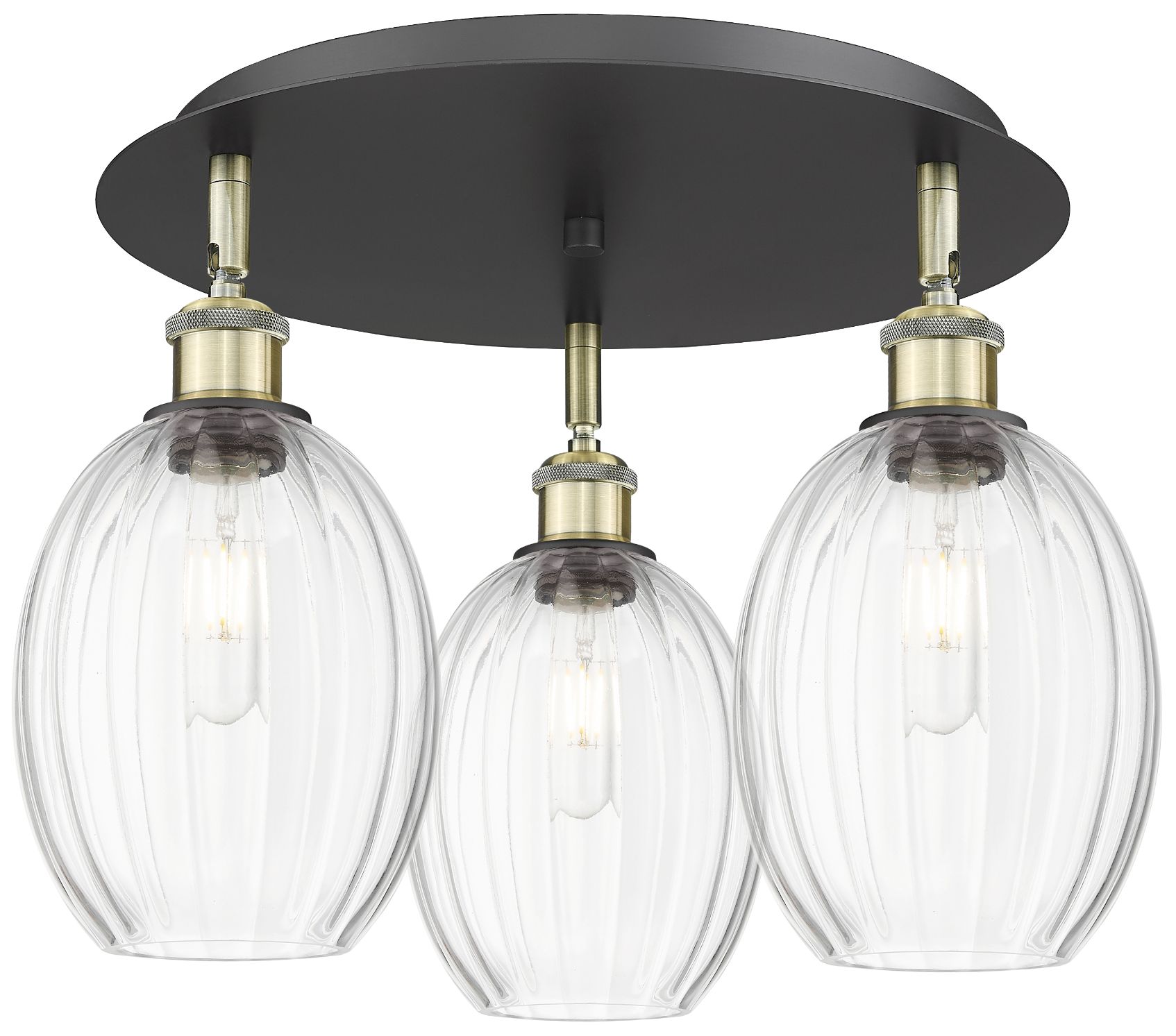 Preston 18" Wide 3-Light Black Antique Brass Flush Mount with Clear Shade
