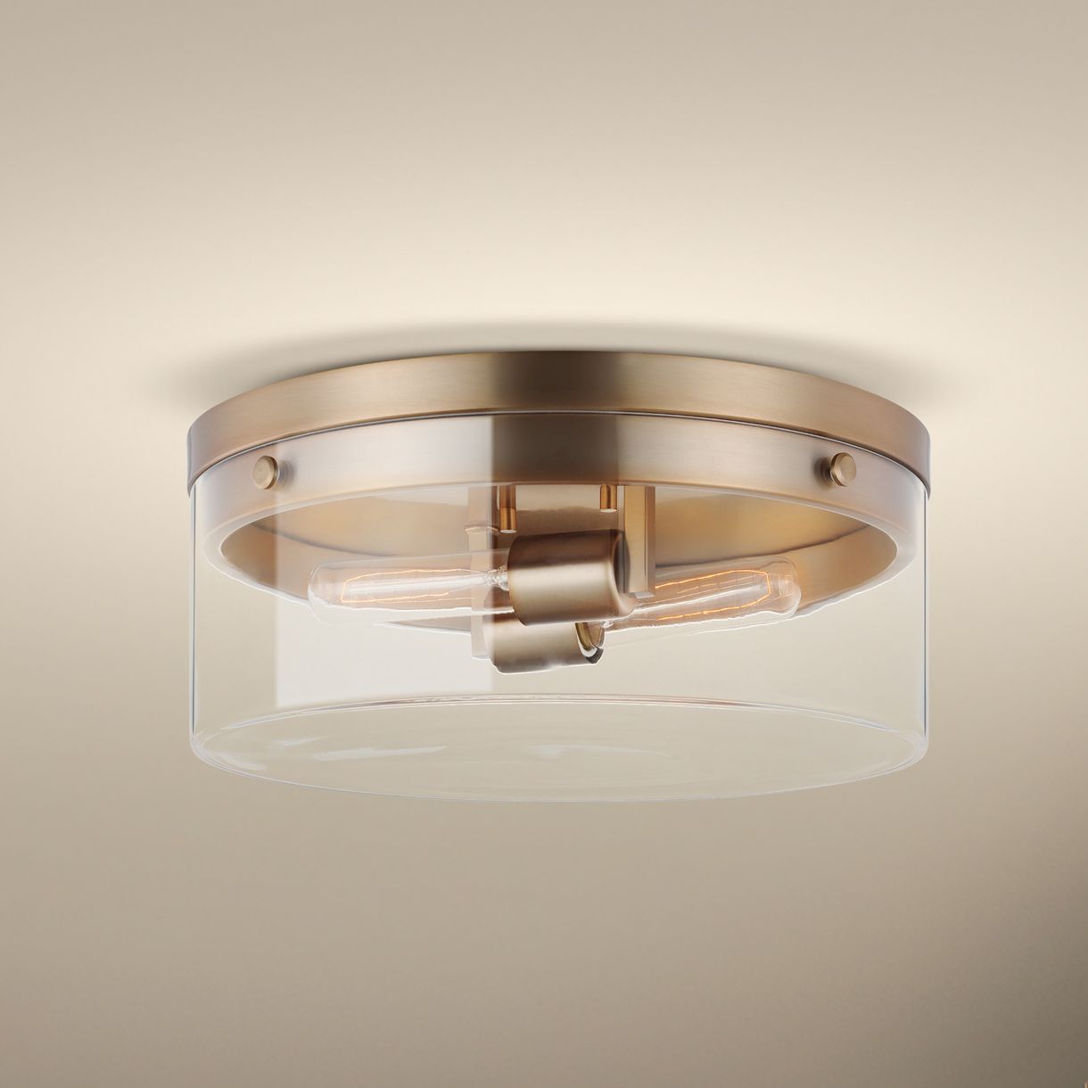 Intersection; Small Flush Mount Fixture; Burnished Brass with Clear Glass