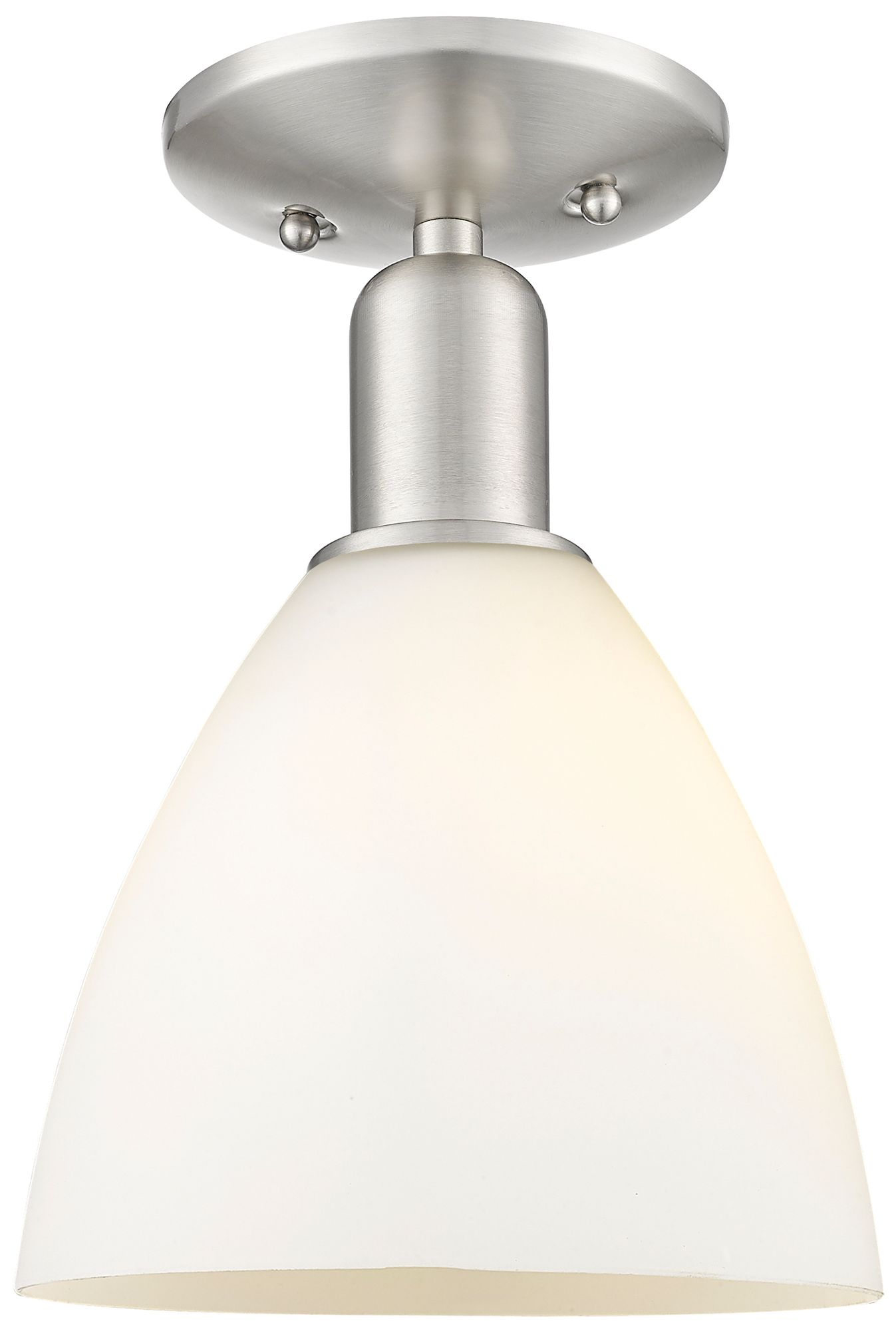 Arcadia Bristol 8"W Brushed Nickel Semi-Flush w/ Matte White Shade