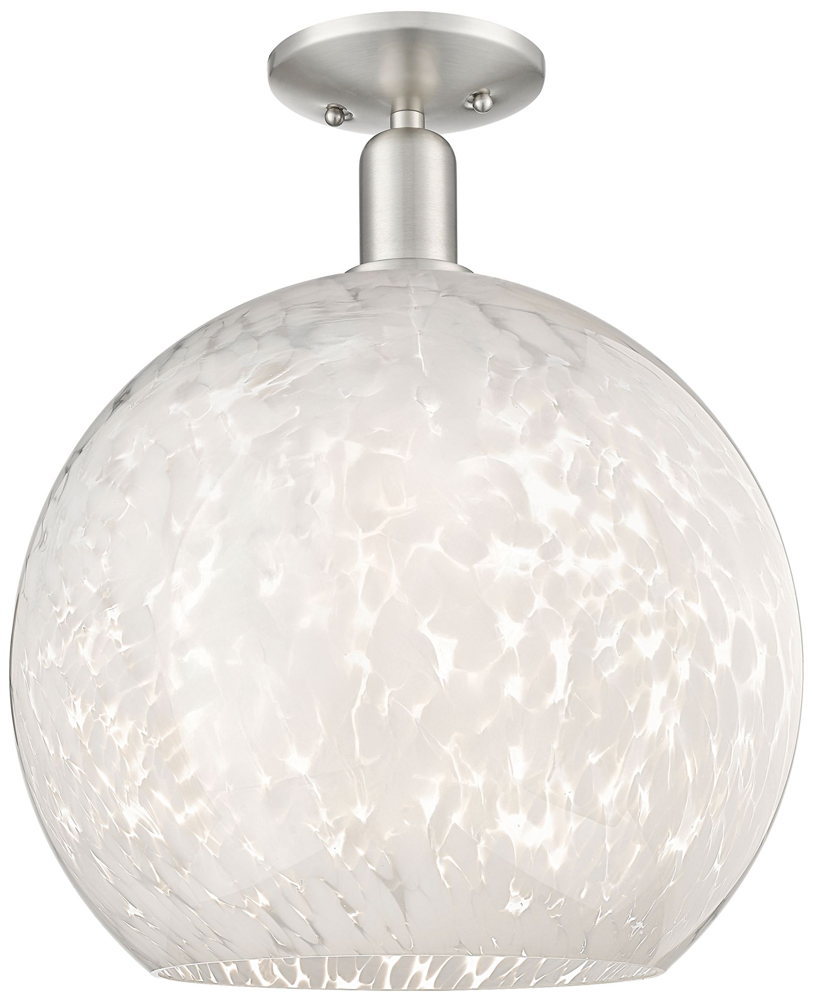 Arcadia White Mouchette 14" Wide Brushed Satin Nickel Semi.Flush Mount