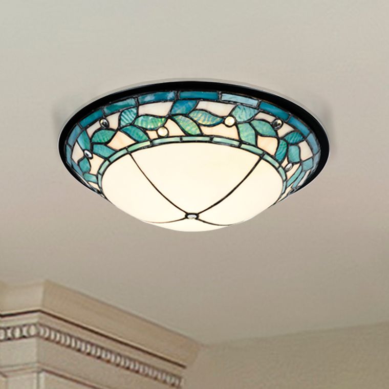 Dale Tiffany 15" Wide Green Leaves Integrated LED Dome Tiffany Flush Mount