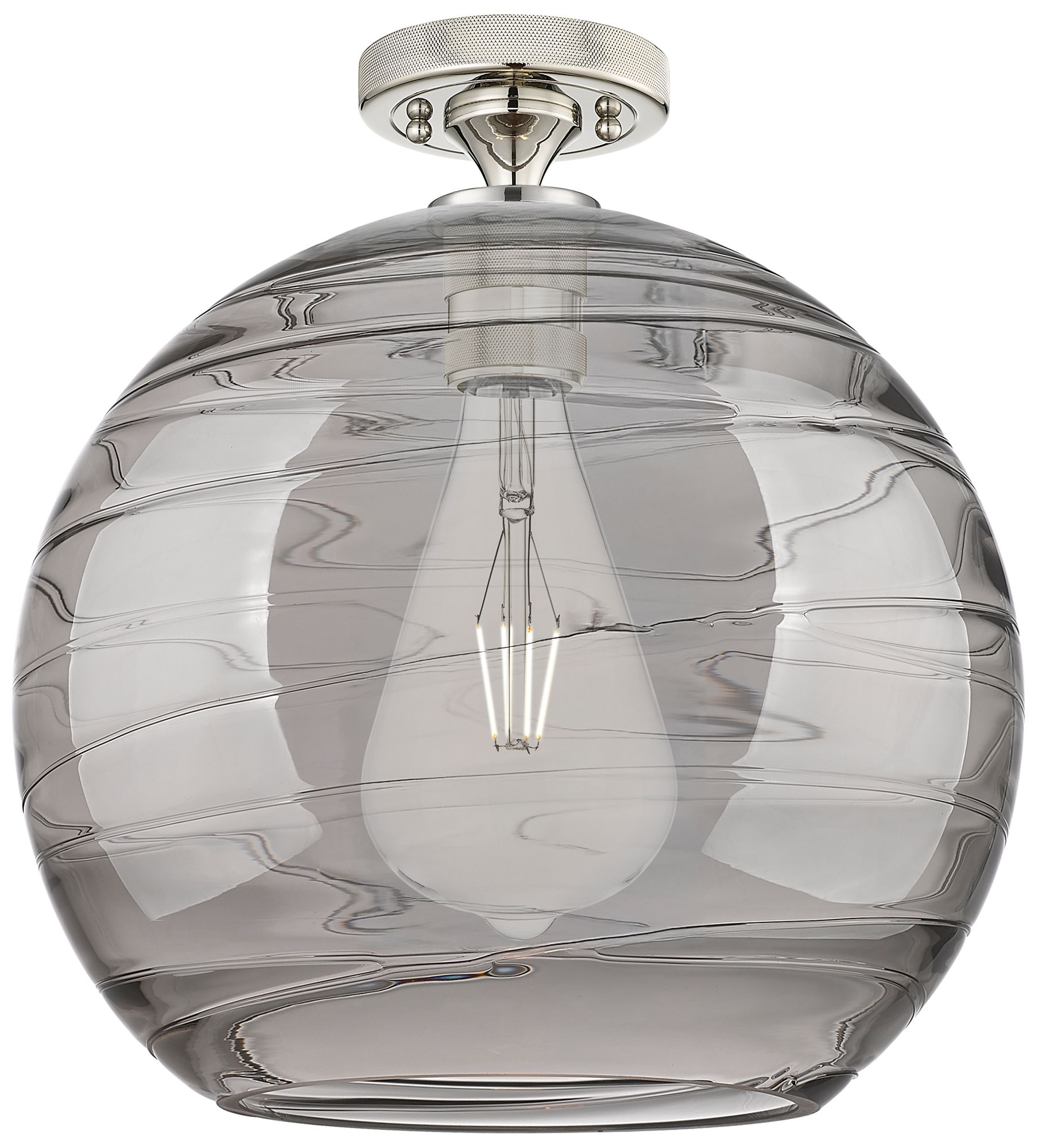 Crown Point Athens Deco Swirl 12"W Nickel Flush Mount w/ Smoke Shade