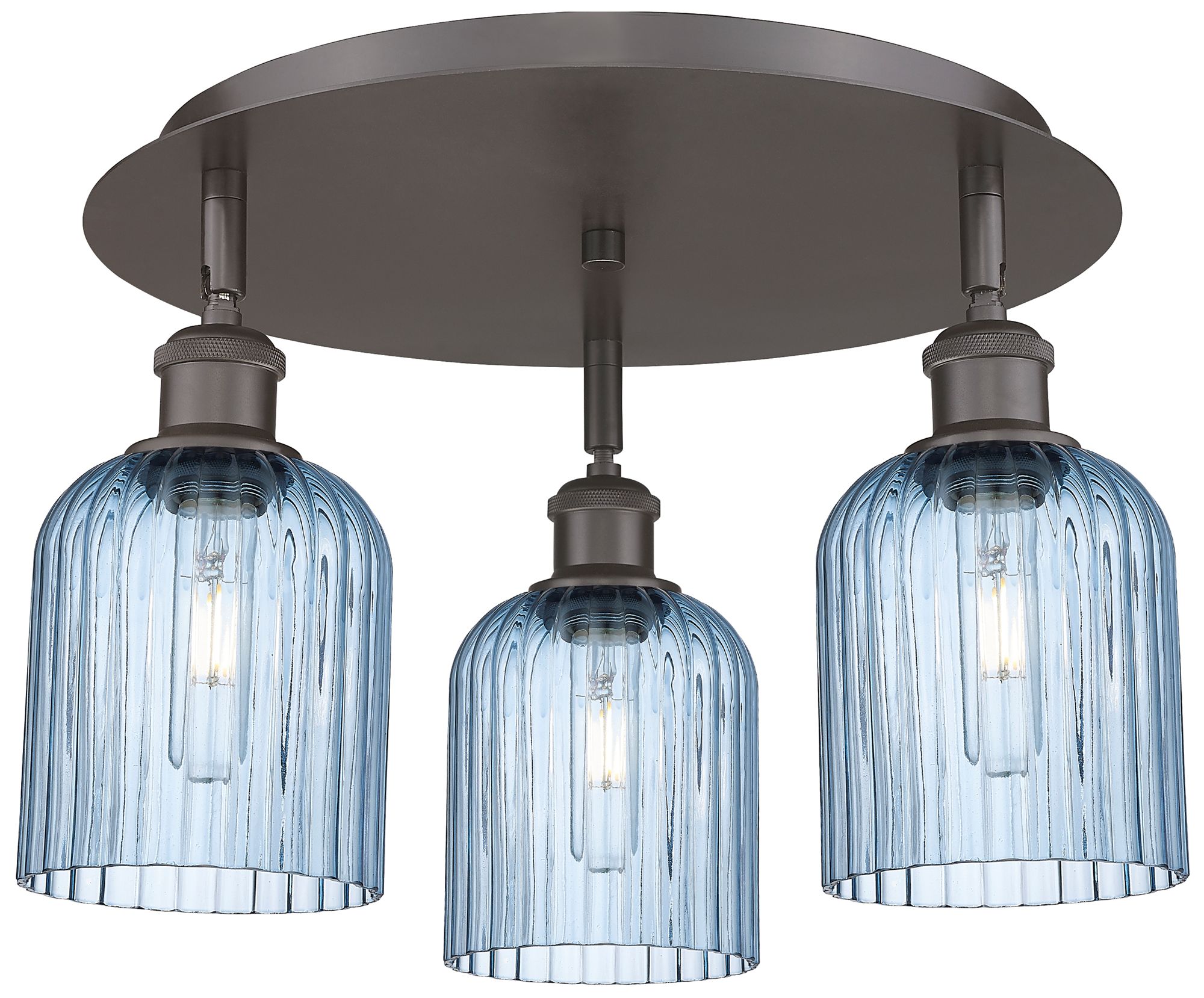 Ballston Bridal Veil 17" 3 Light Flush Mount Bronze w/ Princess Blue Shade