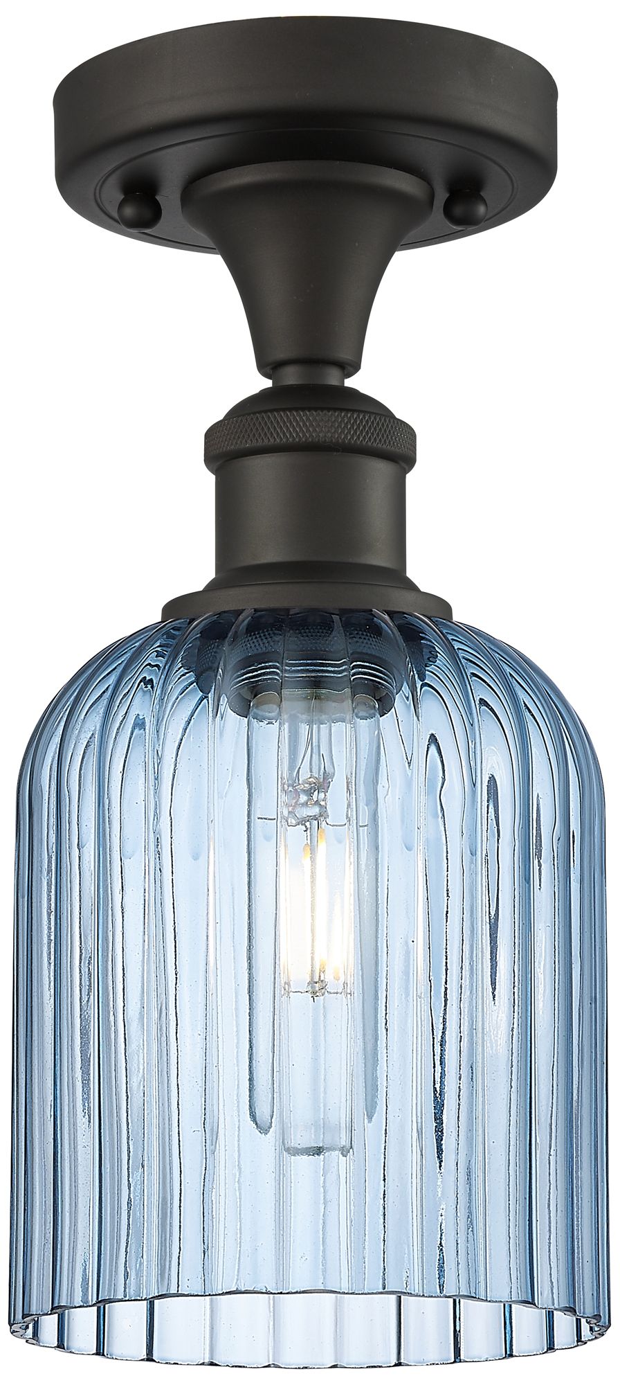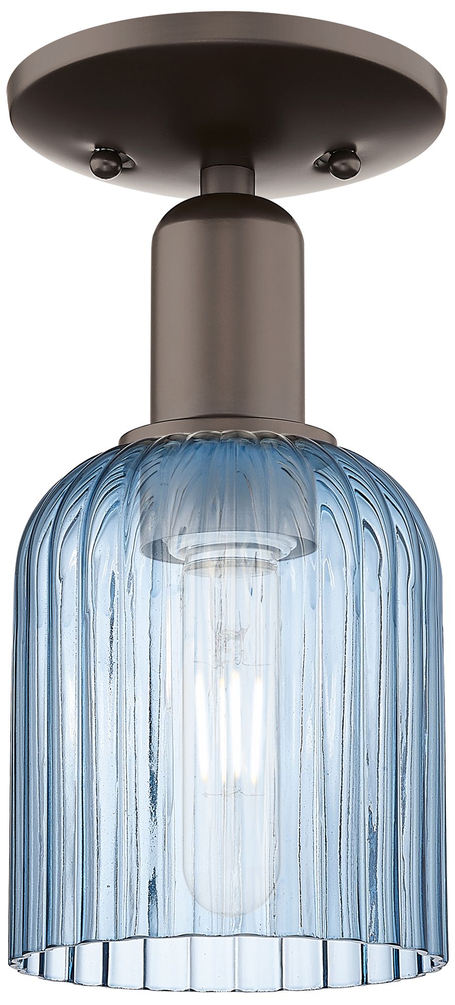 Bridal Veil 5" Wide Oil Rubbed Bronze Semi-Flush Mount With Blue Shade