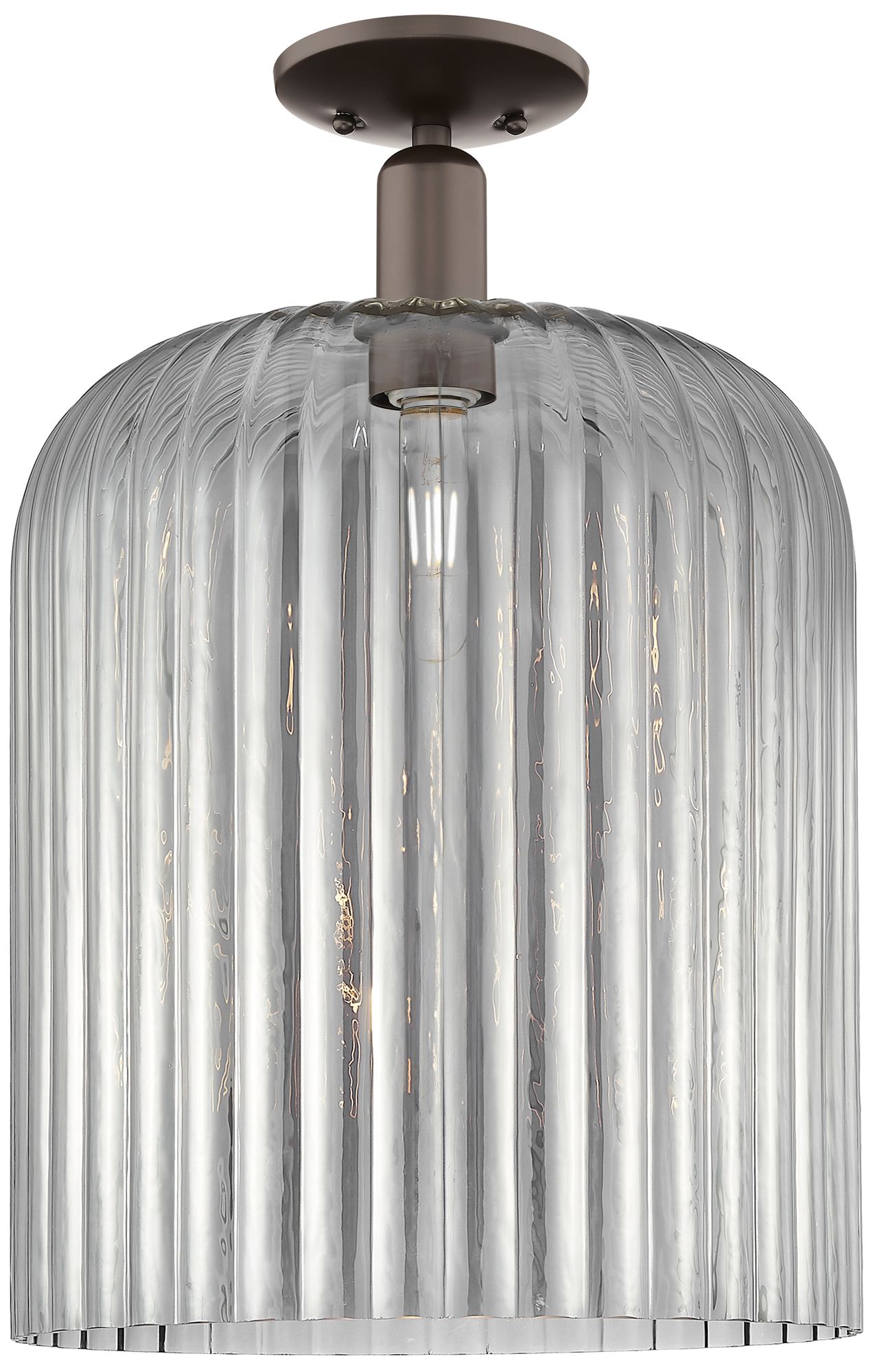 Bridal Veil 12"W Oil Rubbed Bronze Semi-Flush With Light Smoke Shade