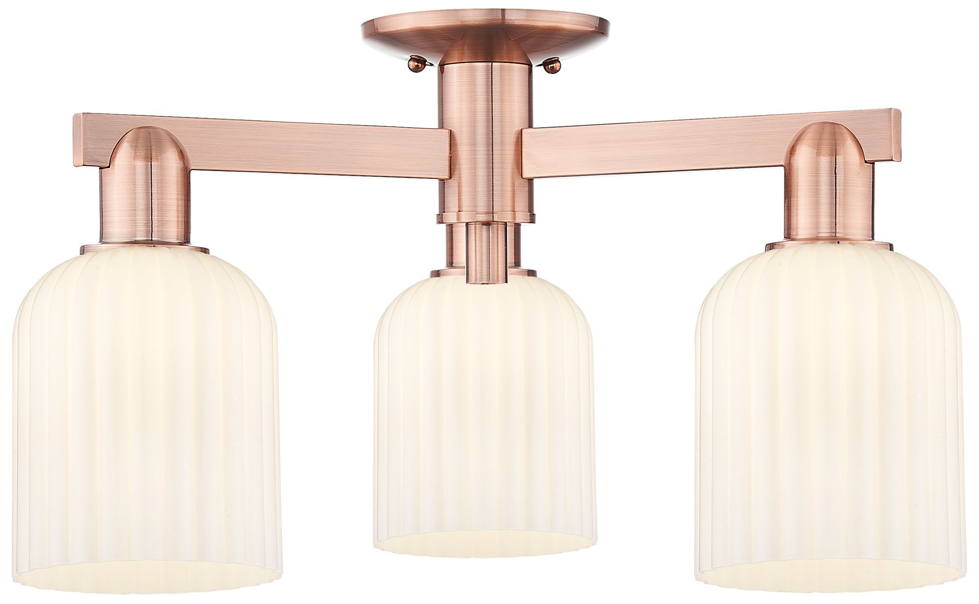 Bridal Veil 23"W 3 Light Copper Semi-Flush With Gloss White Shade