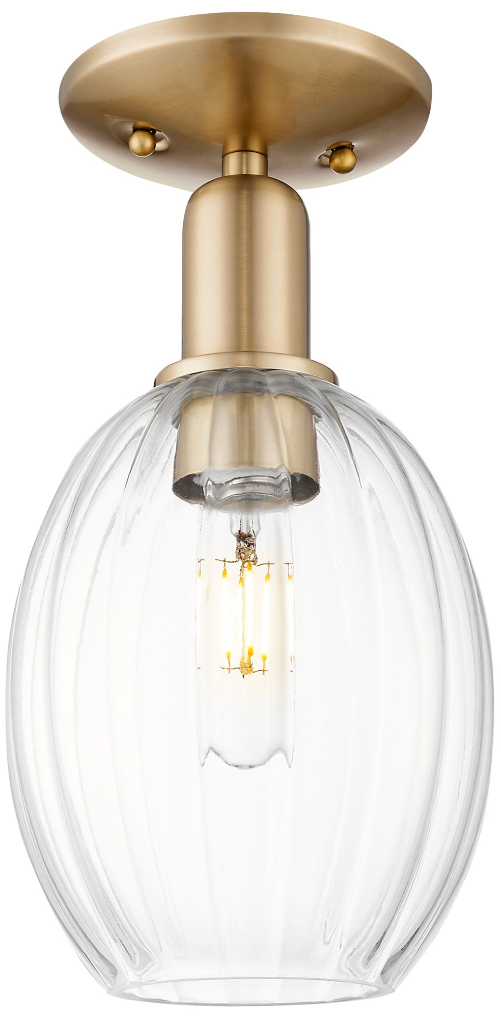 Downtown Preston 6"W Bronze Semi Flush Mount w/ Clear Bulb Shade