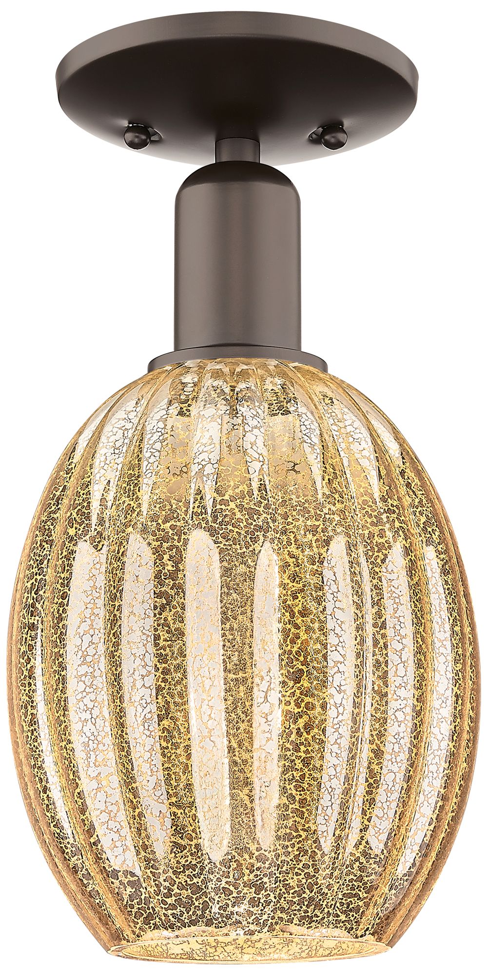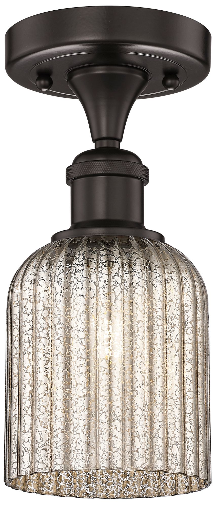 Preston 6"W Oil Rubbed Bronze Semi-Flush Mount With Mercury Flute Shade