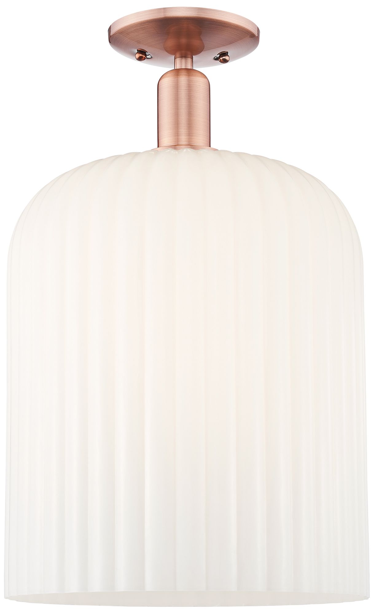 Bridal Veil 12"W Antique Copper Semi-Flush Mount With Gloss White Shade
