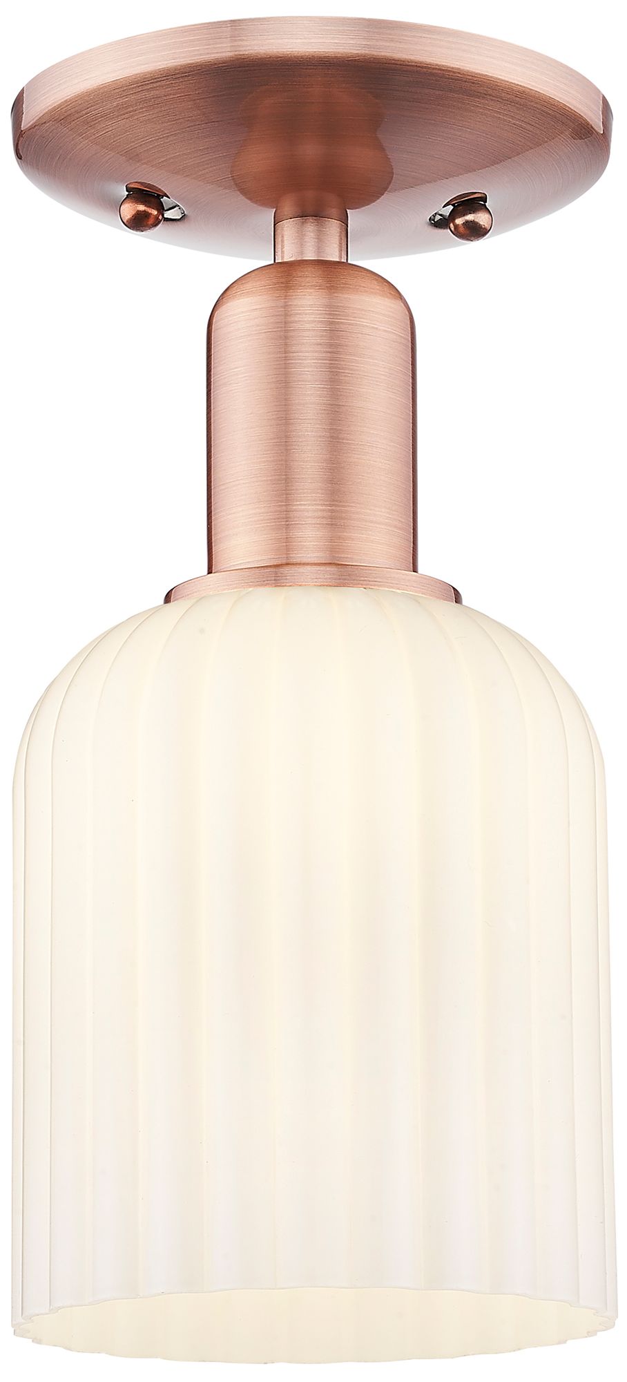 Bridal Veil 5"W Antique Copper Semi-Flush Mount With Gloss White Shade
