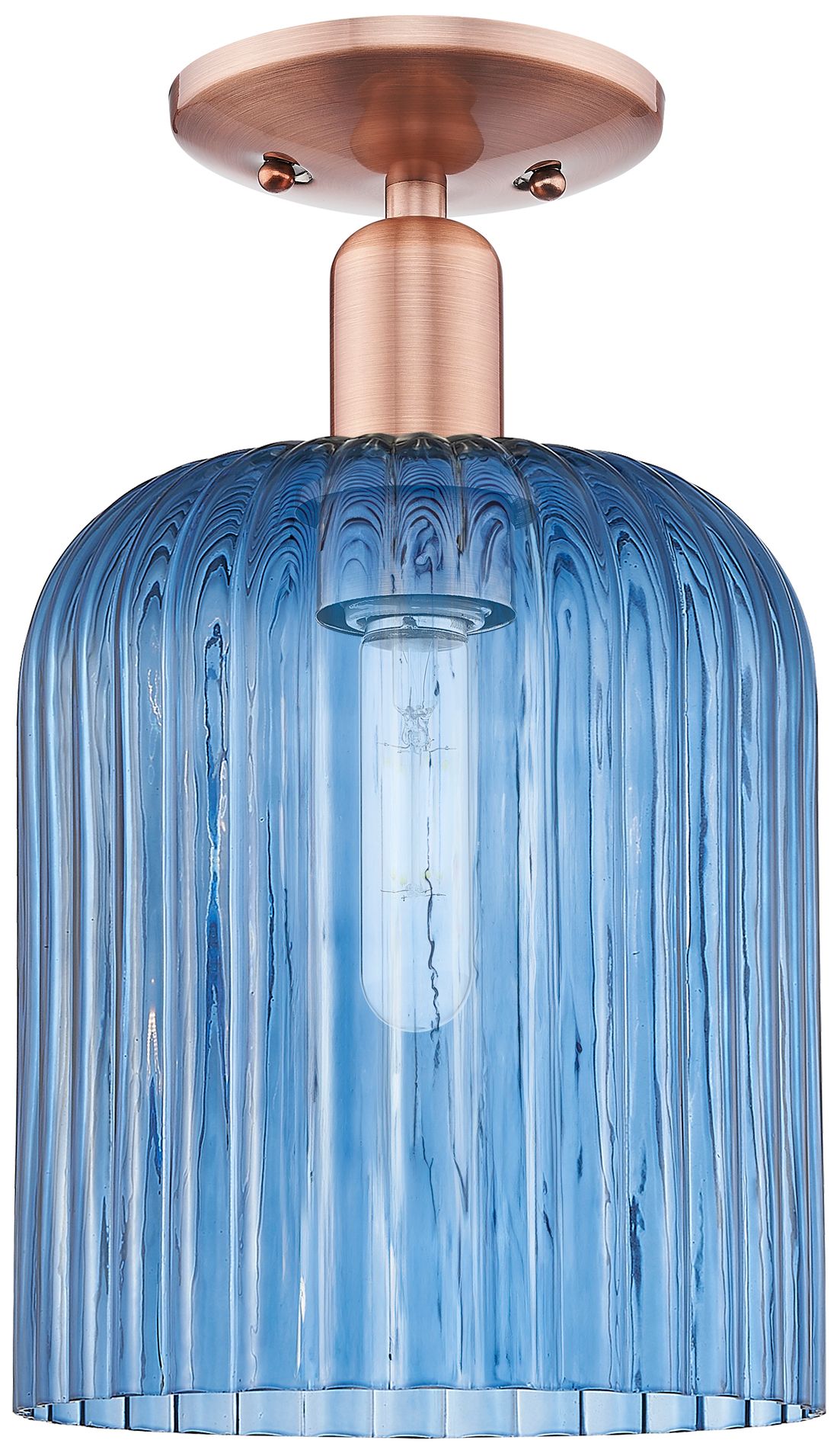 Bridal Veil 8" Wide Antique Copper Semi-Flush Mount With Blue Shade