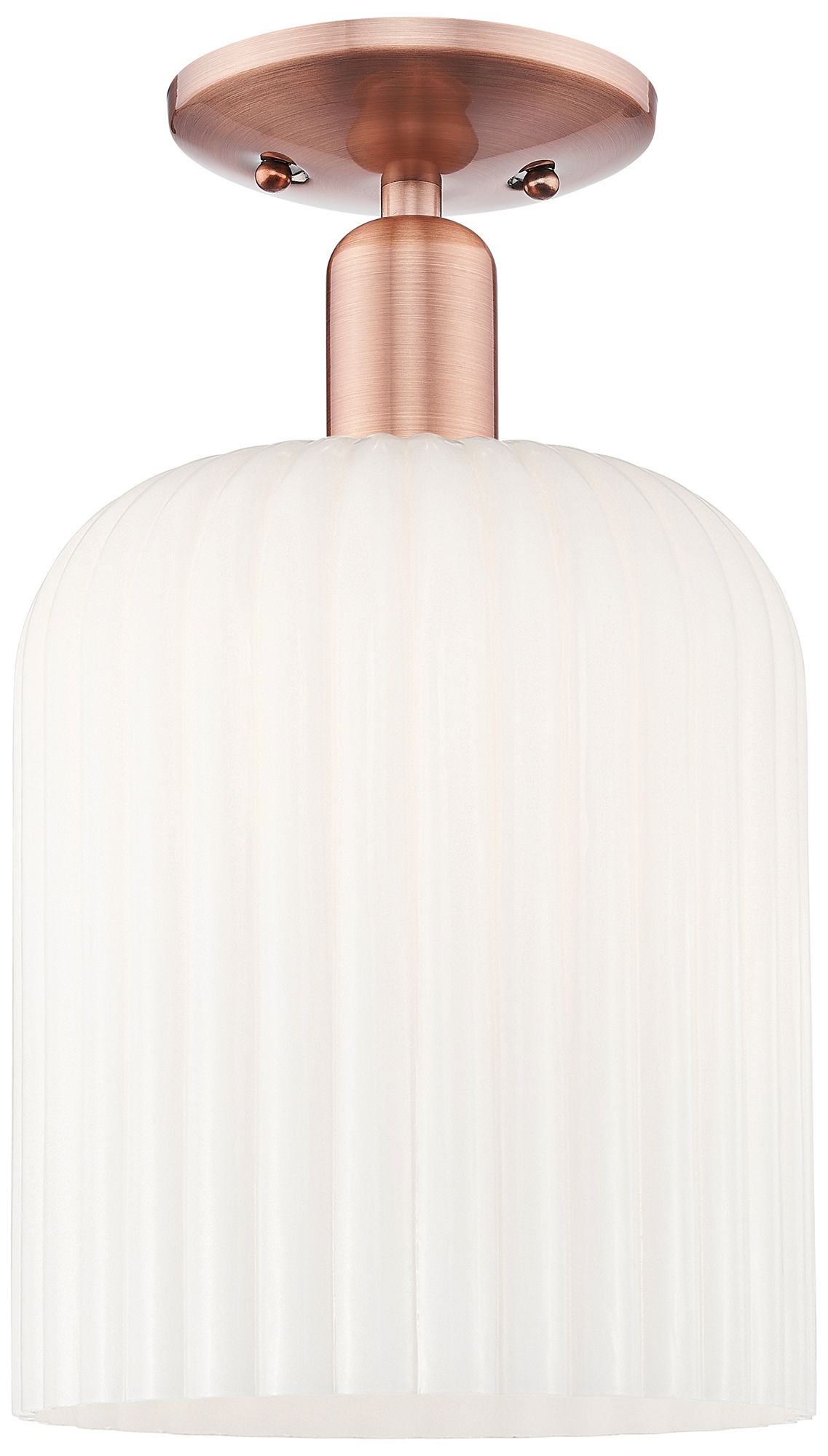 Bridal Veil 8"W Antique Copper Semi-Flush Mount With Gloss White Shade