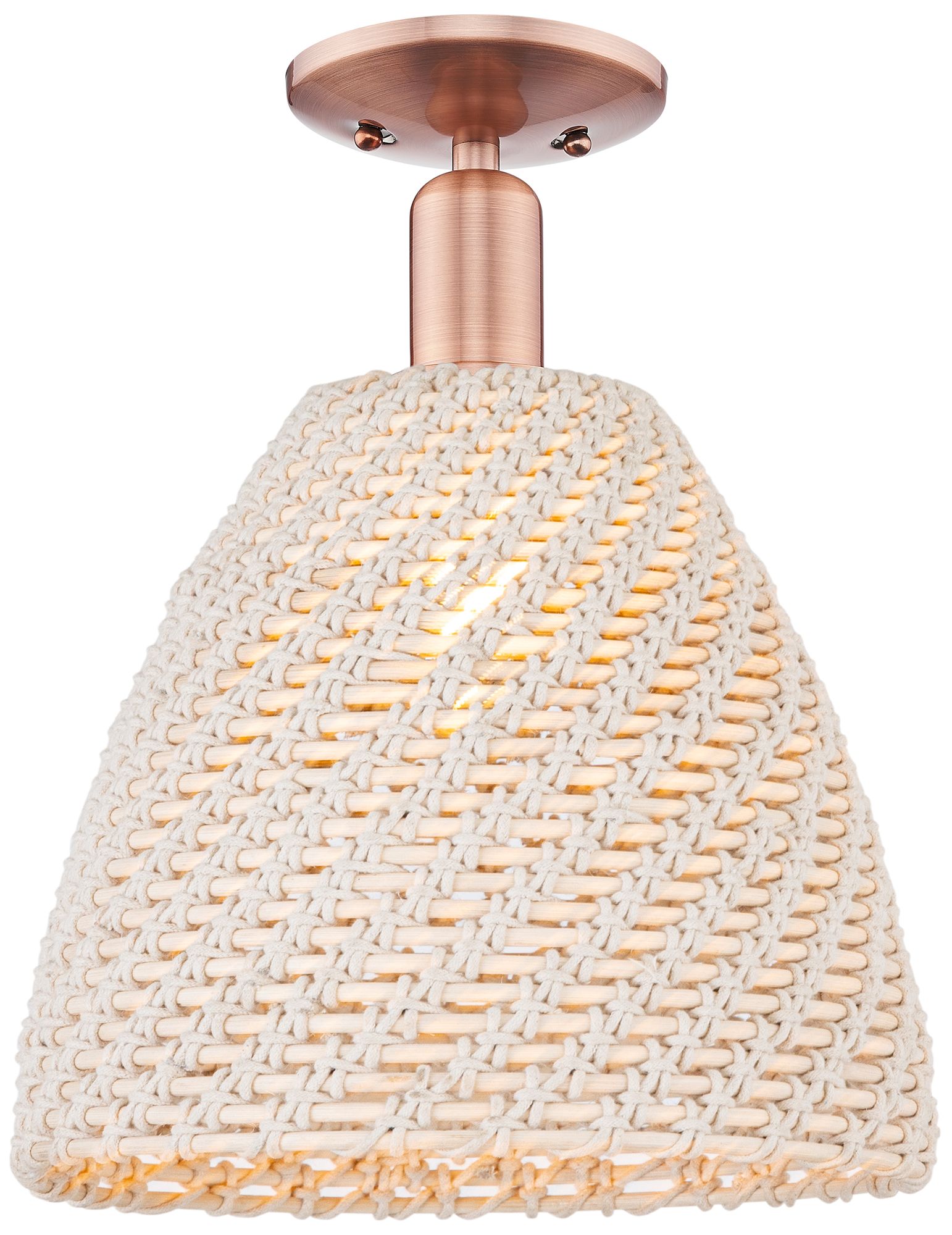 Natural Ballston Dome 12"W Copper Semi-Flush With Fiber Shade