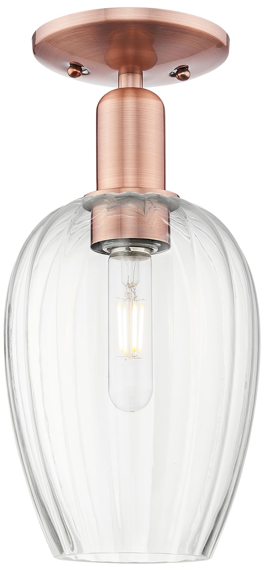 Preston 6" Wide Antique Copper Semi-Flush Mount With Clear Flute Shade