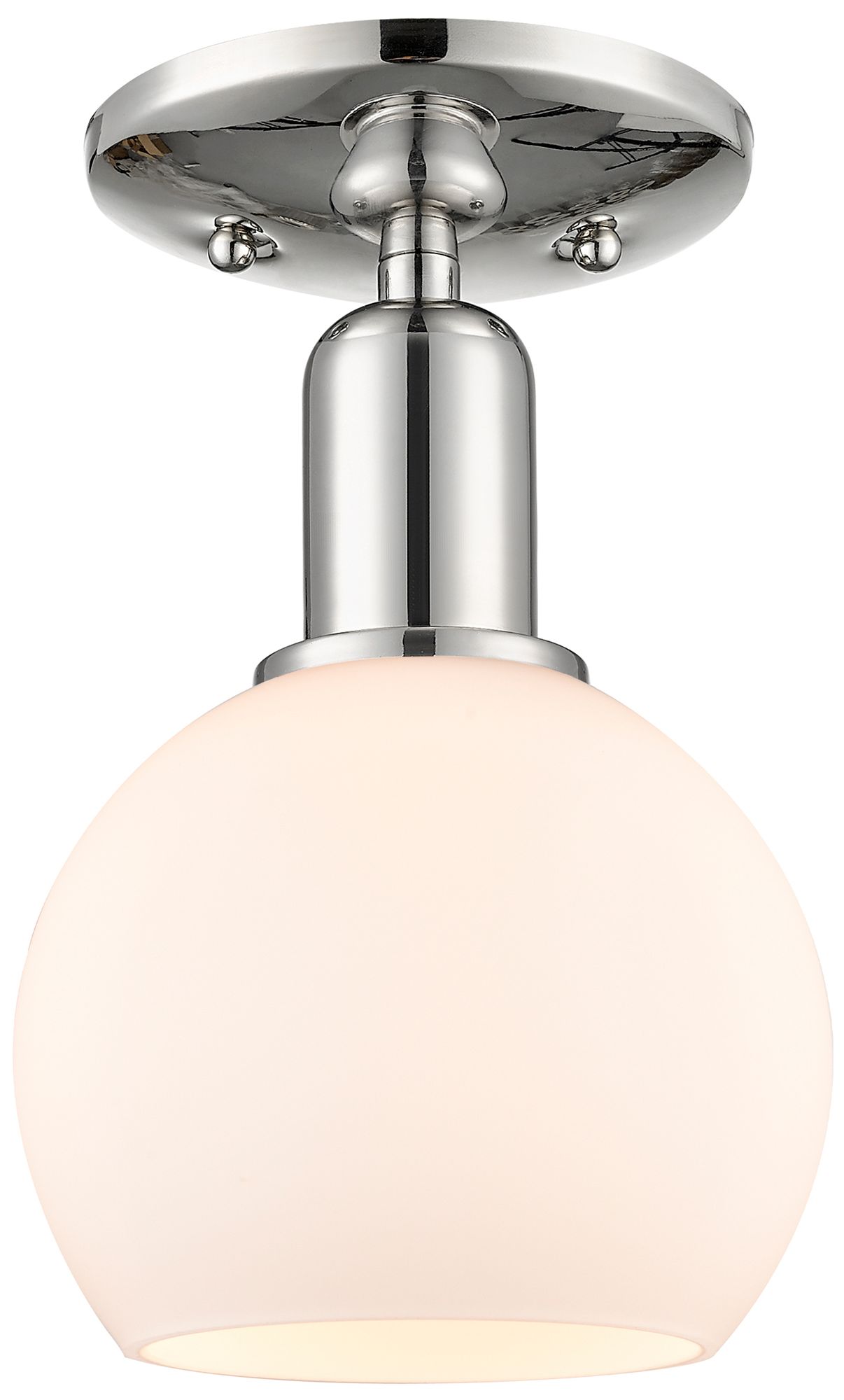 Arcadia Athens 6"W Polished Nickel Semi-Flush w/ Matte White Shade